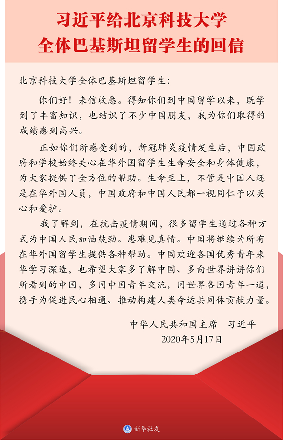 - 下一篇:習(xí)近平給北京科技大學(xué)全體巴基斯坦留學(xué)生的回信引發(fā)學(xué)院留學(xué)生熱烈反響[ 05-25 ]