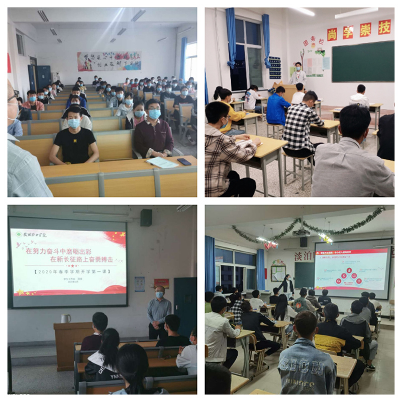 前期,學工處和團委制作了授課PPT《在努力奮斗中磨礪出彩 在新長征路上奮勇搏擊》,并根據(jù)學生返校批次對“開學第一課”進行了安排部署。翟存祥名師工作室成員和130名班主任提前熟悉授課內容,充分做好授課準備,講課中從制度自信、學習防控知識、遵守學院規(guī)定、全心投入學習生活四個方面深入淺出、從點到面耐心講解,引導同學們調整心態(tài),端正態(tài)度,積極面對新生活,并通過戰(zhàn)“疫”故事,讓同學們感受疫情當前的家國情懷,傳承中國精神。