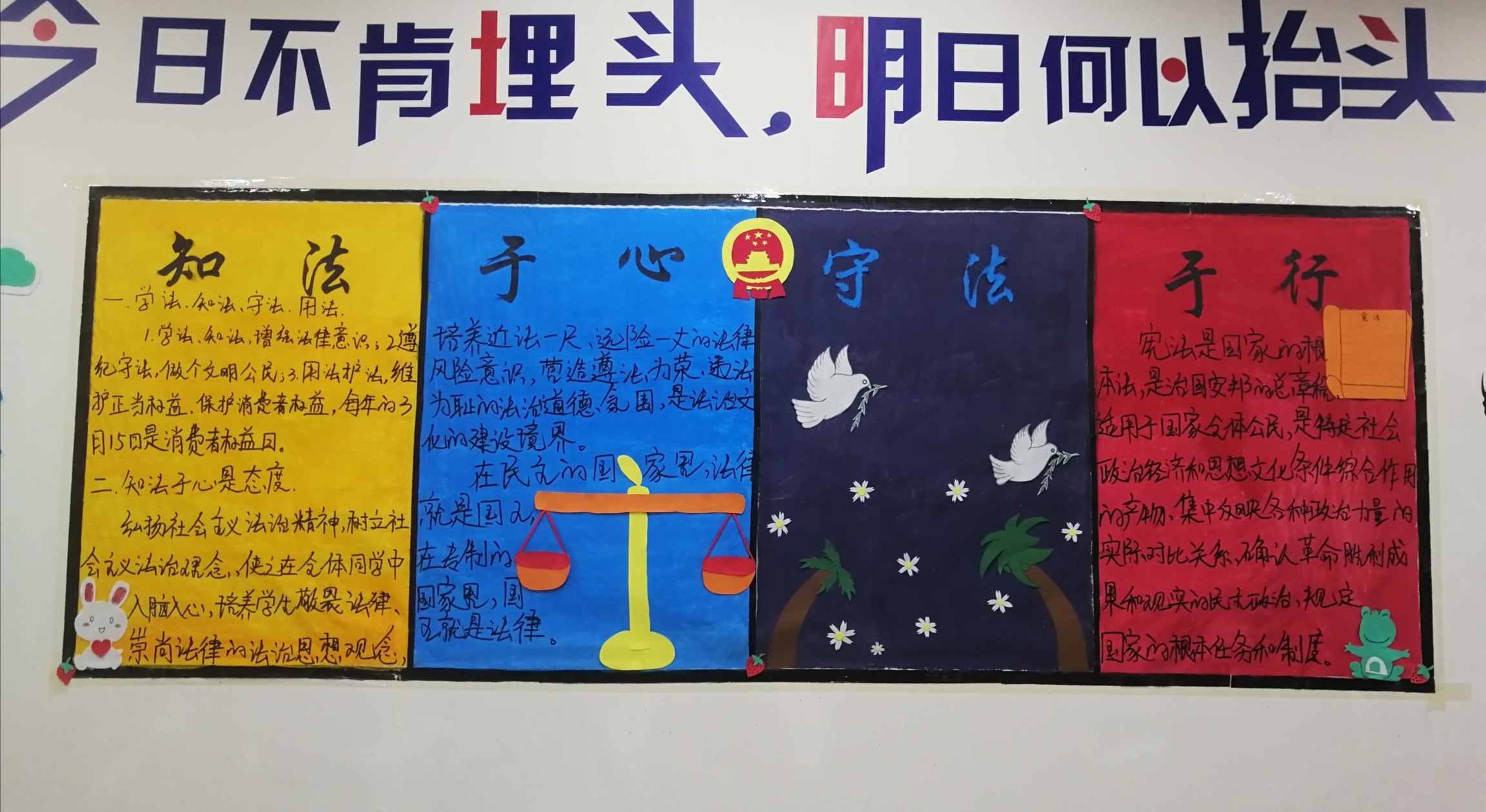?此次主題板報活動的開展,進一步充實了板報的宣傳教育功能,展現(xiàn)了我系學子良好的精神風貌,培養(yǎng)了大學生知法守法的優(yōu)良品質,營造了健康、積極進取的學風,更加提升了學生的法律常識。我系將借此活動為契機,加強我系學生的法律道德意識,引導我系學生知法于心,守法于行。