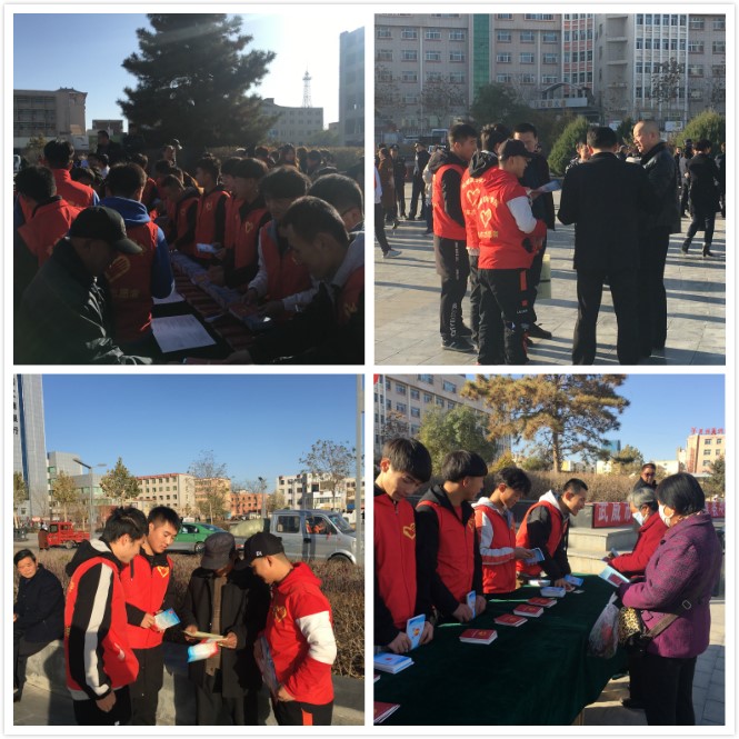 為進(jìn)一步助力全國文明城市創(chuàng)建,全面深入開展普法工作,切實(shí)提升廣大市民的尊法、用法和守法意識(shí),營造濃厚的全民普法氛圍,11月15日上午,學(xué)院應(yīng)市司法局、團(tuán)市委的要求,派出機(jī)械制造系“依法治國”宣講團(tuán),到文化廣場(chǎng)參加武威市“法律進(jìn)家庭,服務(wù)解民憂”主題活動(dòng)啟動(dòng)儀式。