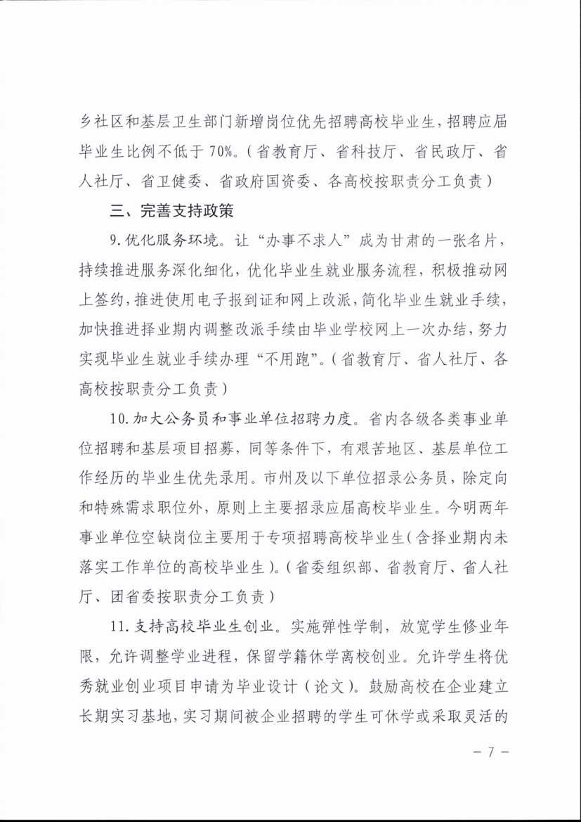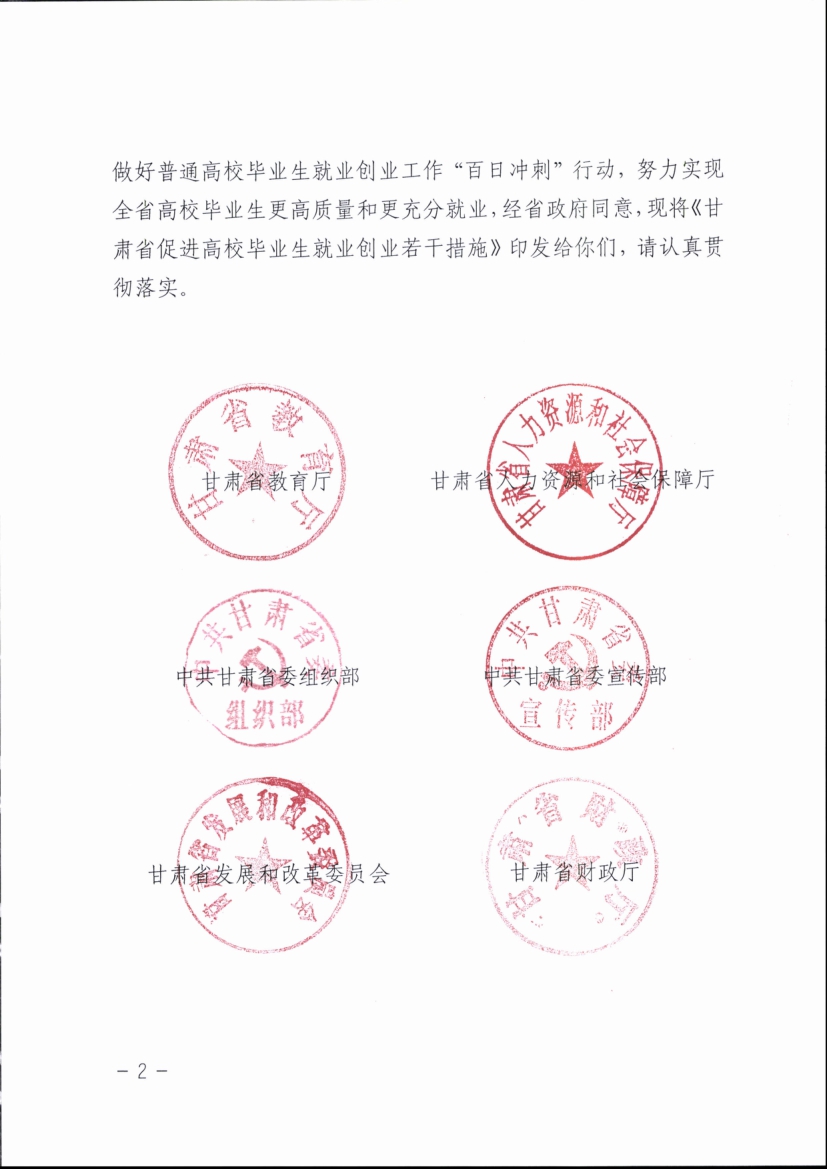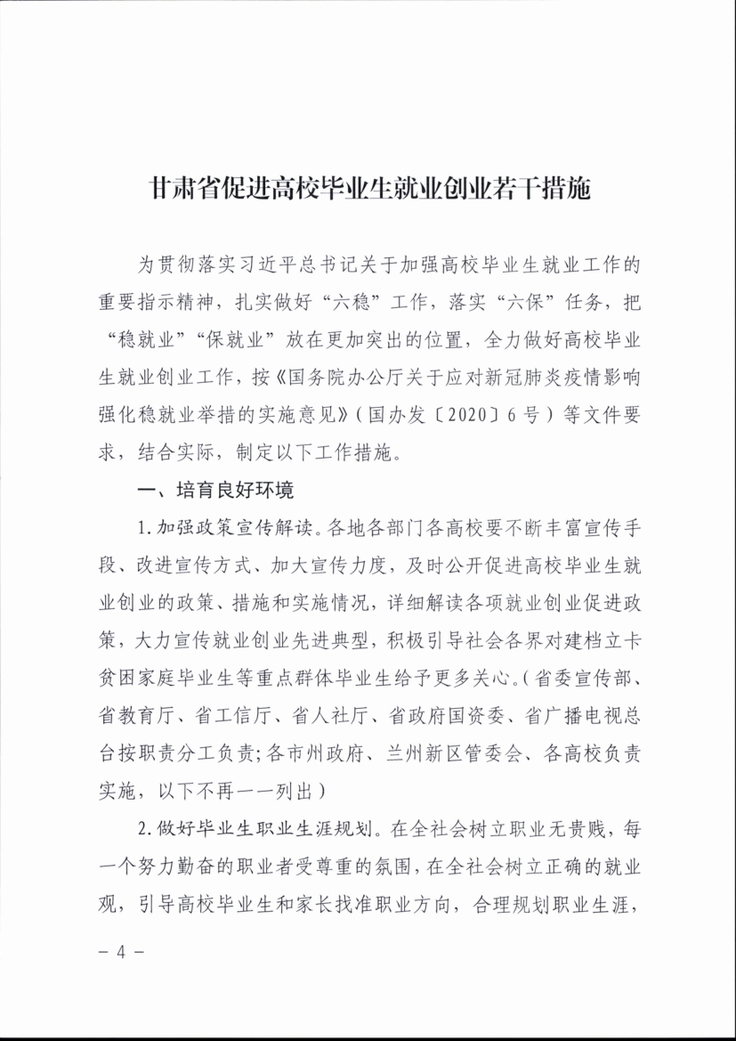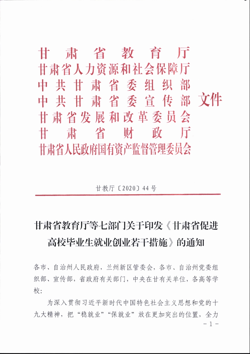 甘肅省教育廳等七部門關于印發(fā)《甘肅省促進高校畢業(yè)生就業(yè)創(chuàng)業(yè)若干措施》的通知