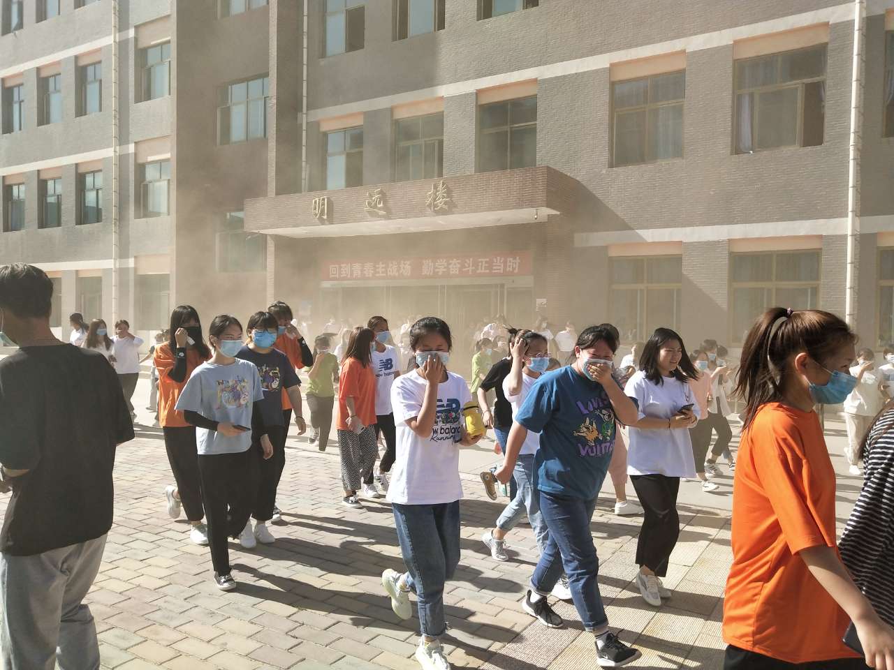 下午4點46分,疏散演練正式開始。隨著消防警報響起,各教學(xué)班上課教師立即停止上課組織學(xué)生疏散,學(xué)生用濕毛巾捂住口鼻,按照逃生路線有序疏散。在3分鐘內(nèi),6000多名參演師生全部撤離到了安全地帶,演練取得圓滿成功。