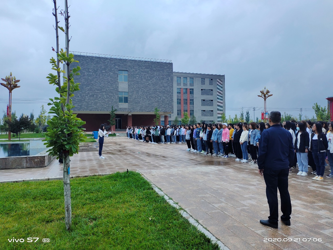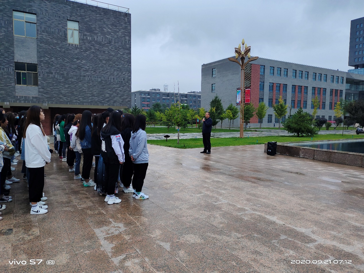 最后,魏潤明以“秋冬季節(jié),加強疫情防護”為題做了講話。他要求全體師生:一、嚴格日常管理。提醒學生早起以增強身體素質(zhì)、健康體魄,要重視自身健康素養(yǎng)和自我防護能力。二、嚴格執(zhí)行請銷假制度。各班主任對請假學生,須認真核實情況,各班同學應(yīng)嚴格執(zhí)行請銷假制度。同時,他告誡2018級學生,抓住有利時機,提前做好“專升本”復習工作,為圓滿完成2021屆畢業(yè)生就業(yè)工作,做好準備。