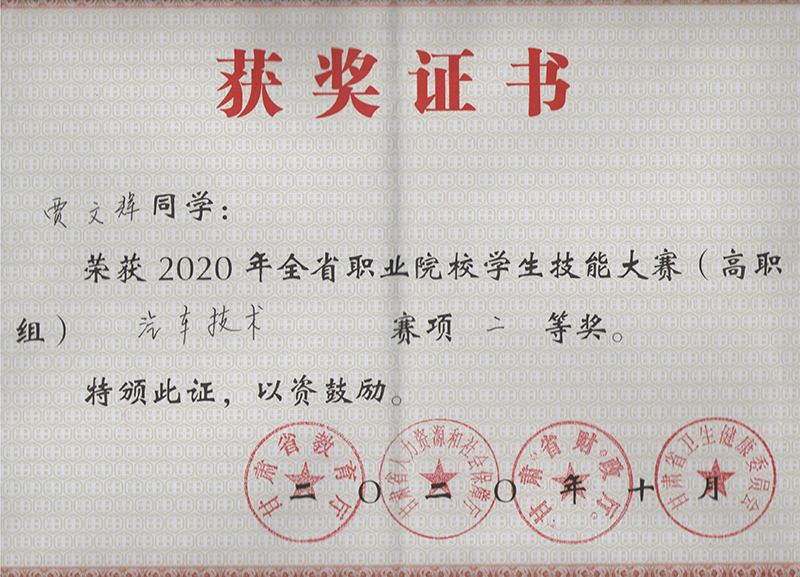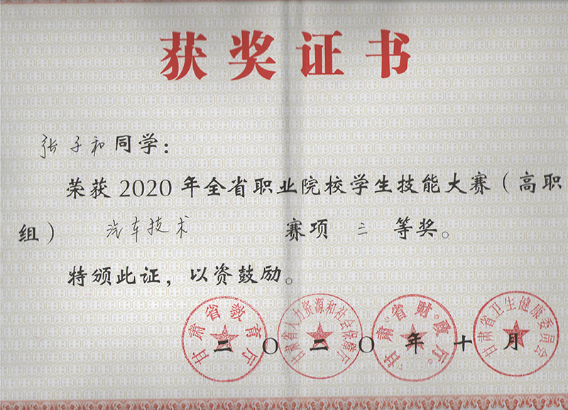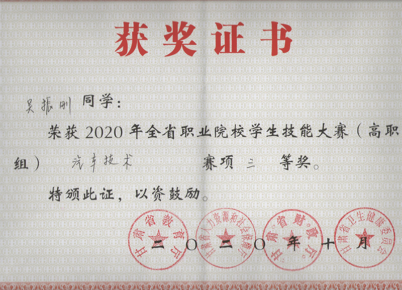 汽車工程系學(xué)生在2020年甘肅省職業(yè)院校學(xué)生技能大賽汽車技術(shù)賽項中獲獎