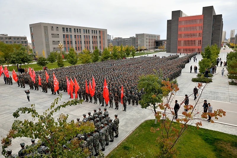 2020年10月13日早上,武威職業(yè)學(xué)院在大學(xué)生活動(dòng)中前廣場(chǎng)舉行了2020級(jí)新生軍訓(xùn)動(dòng)員大會(huì)。學(xué)院黨委副書(shū)記翟存祥向軍訓(xùn)團(tuán)授旗,并宣布新生軍訓(xùn)開(kāi)始;31666部隊(duì)政治工作部副主任杜太申作動(dòng)員講話(huà),院領(lǐng)導(dǎo)王永緒、田迎春、何毅、陳曉煜、張開(kāi)禮出席大會(huì);學(xué)院各教學(xué)院系負(fù)責(zé)人、輔導(dǎo)員、班主任及?2020級(jí)4339名學(xué)生參加了大會(huì)。大會(huì)由黨委委員、副院長(zhǎng)王守云主持。?
