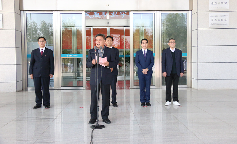 揭牌儀式上,趙明介紹學(xué)院教育教學(xué)改革發(fā)展所取得的成效,強調(diào)職業(yè)教育和普通教育是兩種不同的教育類型,具有同等重要地位,全面落實《國家職業(yè)教育改革實施方案》和“技能甘肅”部署要求,推動學(xué)院“雙高”建設(shè),爭創(chuàng)高職應(yīng)用型本科院校,離不開高水平的合作醫(yī)院,離不開高水平的師資隊伍。教師實踐基地的揭牌成立,將會進一步加強雙方的合作交流,實現(xiàn)資源共享、優(yōu)勢互補、共同發(fā)展,我們要積極探索和創(chuàng)新基地育人方式,使之成為“雙師型”教師培養(yǎng)的搖籃。