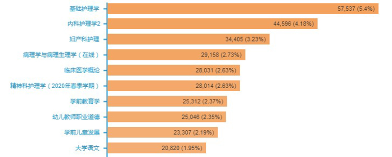 學院教學平臺第三周教學資源訪問量前十位的課程統計