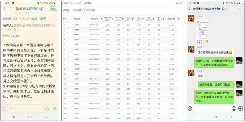 建筑工程系根據學院在線教學工作會的相關要求,進一步細化了在線教學實施方案,落實到每一位教師和學生。開課第三周,建筑工程系在總結前兩周線上教學經驗的基礎上,結合學生的反饋意見,重新梳理了在線教學實施流程,通過課前發(fā)放預習材料明確學習目標和重難點,課后進一步充實線下學習資料,組織開展拓展訓練等教學流程,避免了工科類課程內容枯燥、乏味,學生學習興趣不高的問題。借助超星學習通設計了大量的師生互動環(huán)節(jié),增強課程的互動性和趣味性。加強對教學過程的監(jiān)督管理,教學秘書每天會在學習平臺后臺統計整理學情數據分發(fā)至各班,由任課教師、班主任反復提醒督促,確保在線學習學生到課率達到90%以上,保證了線上教學效果。