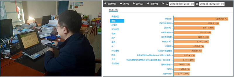 藥學系本周內按照學院要求,認真梳理了前兩周的在線教學中存在的不足和問題,仔細研究了解決問題的辦法措施,加強了在線教學組織與管理工作,修訂完善了在線教學實施方案,做到課程“應上盡上,能上盡上”。通過后臺監(jiān)控數據分析,本周全系課程開課率為94.4%,教師主要采用釘釘群直播實施在線教學,業(yè)務熟練度較前兩周有明顯提升;學生學習熱情較高,周內平均到課率為93%;通過抽查教師教學組織情況可以發(fā)現,教師準備充分,教學資源充足,師生互動多,學生學習任務完成率較高。接下來藥學系將進一步推動教師更新教學理念,實施教學改革,充分利用教學管理數據開展質量監(jiān)控;鼓勵教師加大課堂教學設計與組織的研究,增加與同學的課堂互動和情感交流,促進學生對線上課堂的適應性,提升線上課堂滿意度。