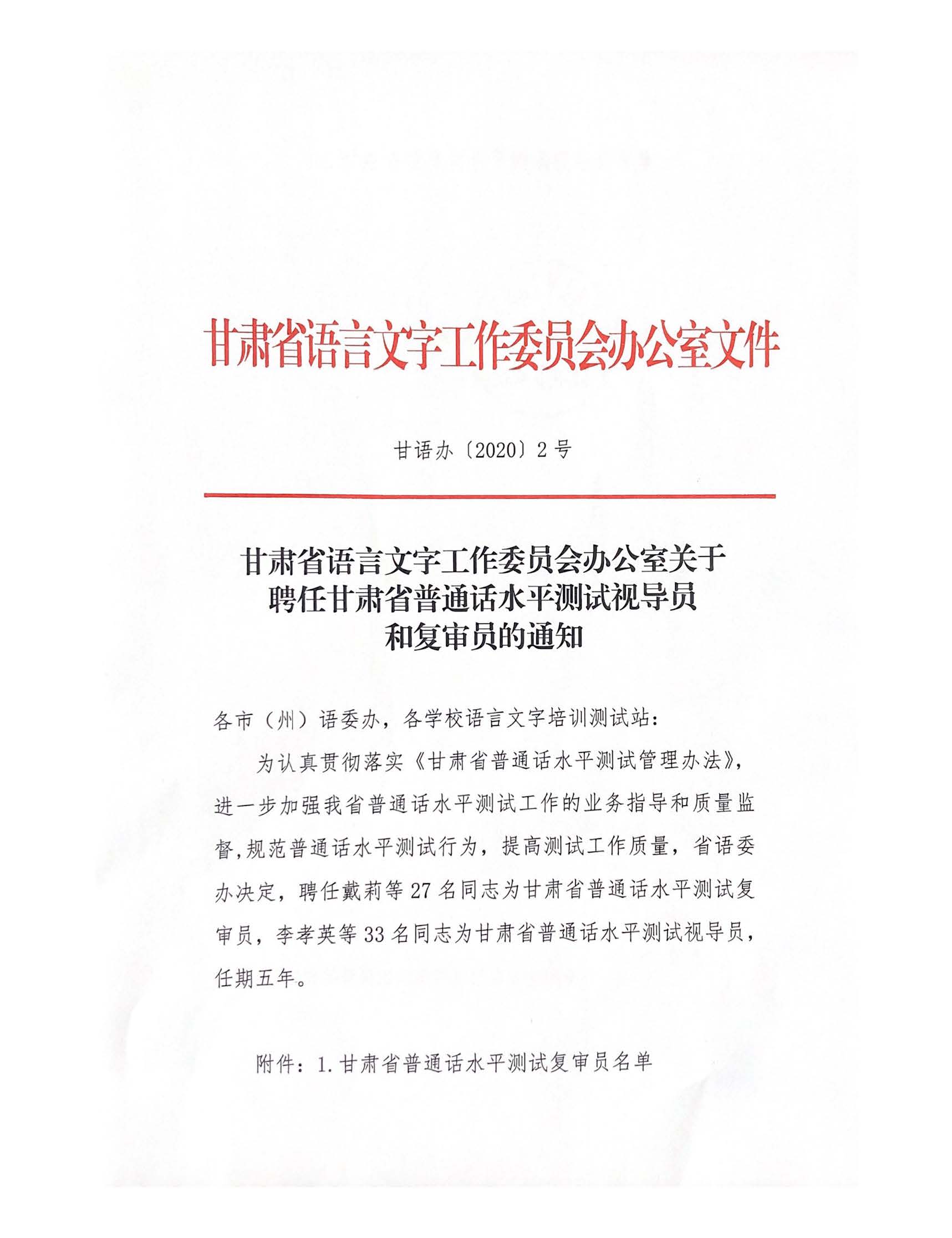 我院護(hù)理系趙穎教授獲得“甘肅省普通話測(cè)試復(fù)審員”資格