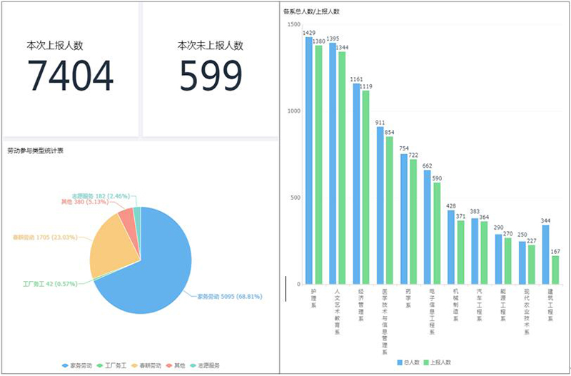 結(jié)合學(xué)生生活和學(xué)習(xí)實(shí)際,學(xué)院要求廣大學(xué)生積極參與志愿服務(wù)、春耕勞動(dòng)、工廠務(wù)工、家務(wù)勞動(dòng)等方面勞動(dòng)實(shí)踐,完成每周不少于2小時(shí)的實(shí)踐鍛煉,并通過(guò)信息化平臺(tái)上報(bào)活動(dòng)照片和勞動(dòng)心得。統(tǒng)計(jì)顯示,本次活動(dòng)上報(bào)7404人次,其中,家務(wù)勞動(dòng)5095人次,占68.81%,春耕勞動(dòng)1705人次,占23.03%,志愿服務(wù)182人次,占2.46%。