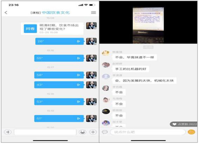 經(jīng)濟(jì)管理系張海燕老師,充分利用網(wǎng)絡(luò)資源上好線上課程,巧妙引導(dǎo)學(xué)生提高教學(xué)效果。利用“自建+在線資源優(yōu)選”的方式豐富《隴原民俗文化》《中國(guó)飲食文化》兩門(mén)課程的線上教學(xué)資源,并采用錄屏方式將網(wǎng)絡(luò)資源進(jìn)行加工,為自建課程添加教學(xué)元素。在課堂講授過(guò)程中,根據(jù)教學(xué)內(nèi)容與個(gè)人喜好靈活選擇直播、語(yǔ)音教學(xué)、自學(xué)+答疑等授課方式。為達(dá)到良好教學(xué)的效果,課中通過(guò)圖片、視頻、音頻、形式多樣的教學(xué)活動(dòng)、趣味性作業(yè)等激發(fā)學(xué)生自主學(xué)習(xí)的興趣,活躍課堂氣氛,并掌握學(xué)生學(xué)習(xí)動(dòng)態(tài)。