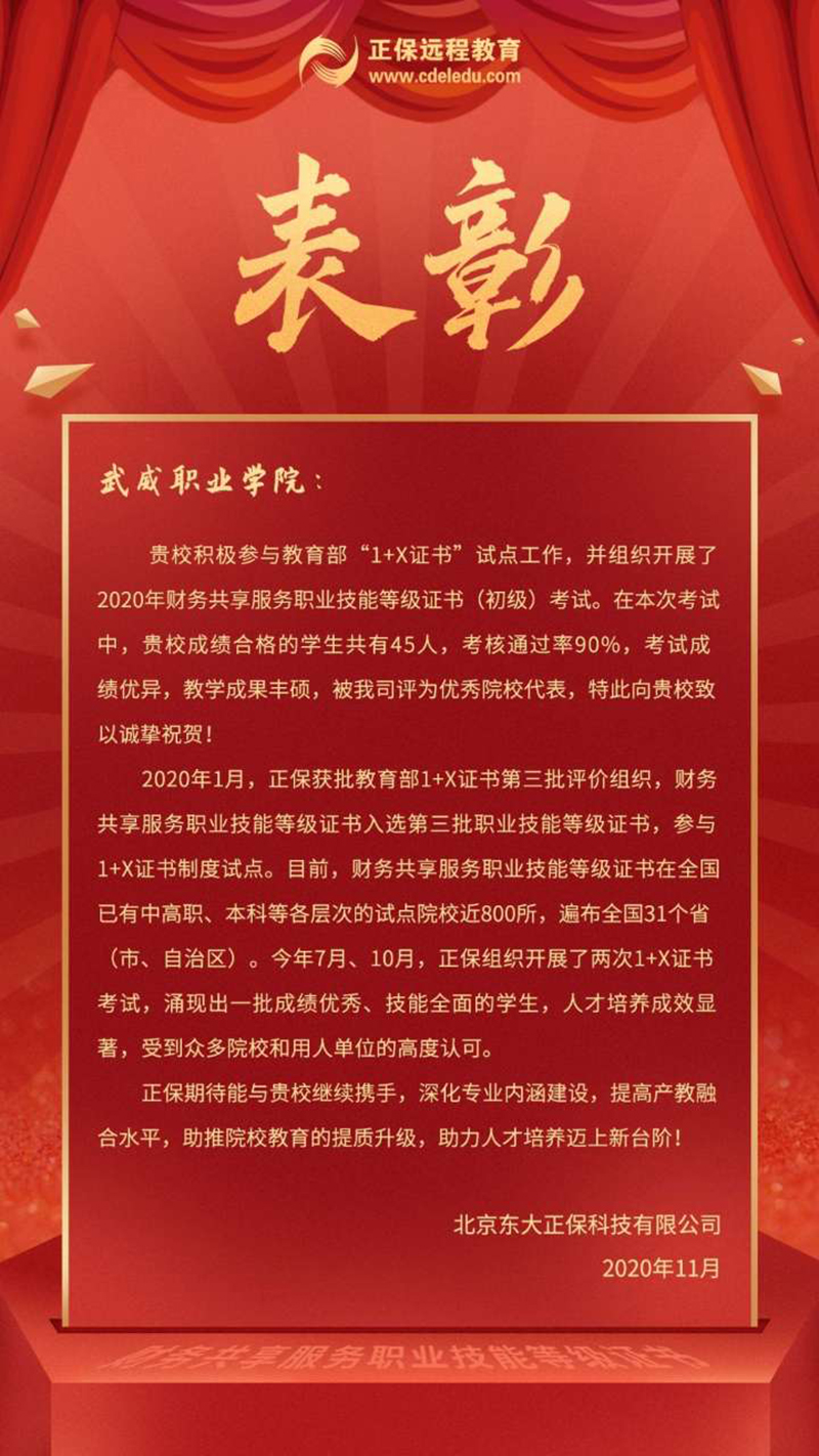 學(xué)院圓滿完成首個(gè)1+X證書(shū)制度試點(diǎn)考試工作并獲評(píng)為優(yōu)秀院校代表