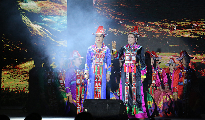 原創(chuàng)合唱音詩(shī)《薩娜瑪珂》取材于甘肅省獨(dú)有的少數(shù)民族裕固族的同名史詩(shī),以裕固族民族女英雄為人物形象,以裕固族民族音樂(lè)為音樂(lè)基調(diào),以感人至深的故事情節(jié)為創(chuàng)意線索,全劇采用四部合唱、女高音領(lǐng)唱、男中音領(lǐng)唱以及朗誦等富有獨(dú)特表現(xiàn)力的藝術(shù)形式,生動(dòng)再現(xiàn)了薩娜瑪珂的壯美人生和傳奇故事。原生態(tài)的民族音樂(lè)、如詩(shī)如畫(huà)的舞美、濃郁的民族風(fēng)情,深深地感染了現(xiàn)場(chǎng)師生,贏得了陣陣熱烈的掌聲。
