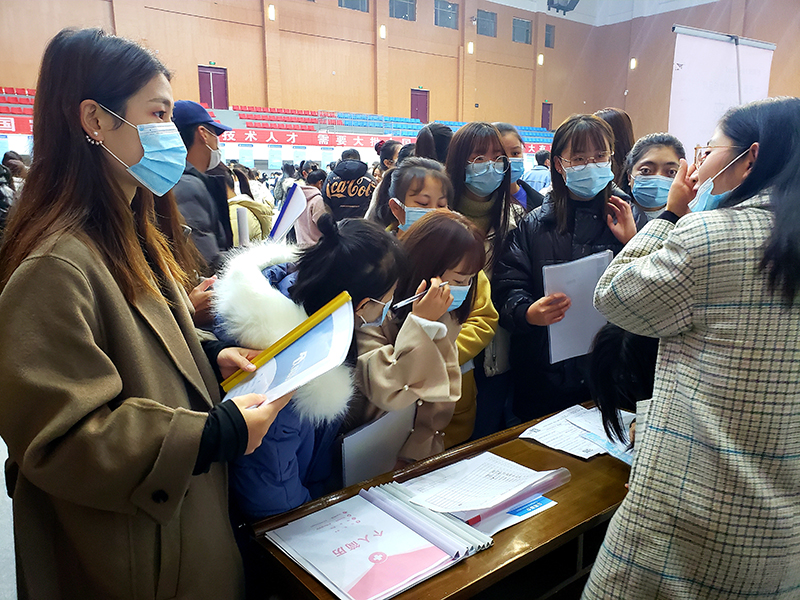 本次招聘會吸引了150多家企業(yè)報名參會,從中挑選110余家專業(yè)契合度高、發(fā)展?jié)摿姟⑸鐣抛u好、福利待遇優(yōu)的企業(yè)參加招聘。招聘單位涵蓋了機械機電、能源化工、信息工程、農(nóng)業(yè)技術(shù)、建筑制造、醫(yī)藥衛(wèi)生、教育培訓(xùn)等50多個崗位類別,為畢業(yè)生提供崗位3340多個。招聘會現(xiàn)場人頭攢動,招聘單位積極宣介,同學(xué)們手持簡歷從容自信地展示自己扎實的專業(yè)知識以及良好的精神風(fēng)貌,贏得了招聘單位的贊賞。學(xué)院2021屆畢業(yè)生共有3803名,經(jīng)初步統(tǒng)計,此次招聘會共達(dá)成就業(yè)意向2500多名,有1800人在招聘會現(xiàn)場簽訂了就業(yè)三方協(xié)議。此次招聘會按照新冠肺炎疫情常態(tài)化防控要求,逐一核驗來校招聘人員健康綠碼,嚴(yán)格落實體溫檢測、消毒防疫等疫情防控措施。