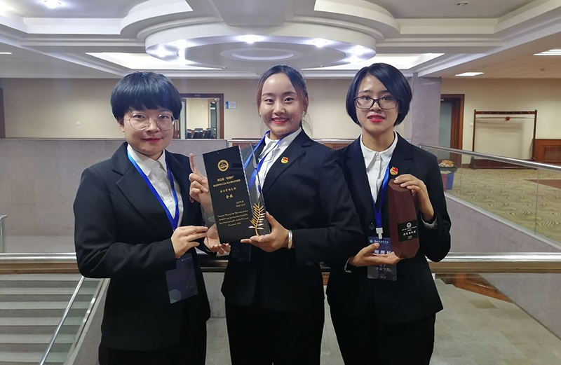 在上午進行的初賽中,非法學組共有13個學校參加,前八名進入決賽。我院三位選手在與兄弟學校的激烈角逐下,脫穎而出,以小組賽第二名、初賽第四名的成績輕松進入決賽。下午的決賽中,面對更強大的對手,面對評委老師,三位選手始終面帶笑容、自信滿滿、密切配合,憑自己的努力、實力,發(fā)揮出她們的最好水平,個人答題毫無破綻、搶答過程頻頻得手、個人論述聲情并茂,獲得了評委的高度贊賞。經過激烈的比拼,我院代表隊一路披荊斬棘,過關斬將,最終獲得非法學組金獎(第一名),學院獲優(yōu)秀組織獎,羅茜獲得個人優(yōu)秀選手獎。