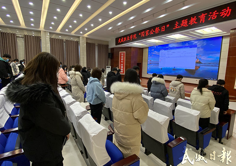 當(dāng)天各系組織開展了國(guó)家公祭日主題團(tuán)日活動(dòng)。通過(guò)學(xué)習(xí)南京大屠殺相關(guān)歷史知識(shí)、講解國(guó)家公祭日設(shè)立的重大意義、進(jìn)行默哀儀式、共同宣讀《和平宣言》等形式表達(dá)對(duì)南京大屠殺遇難者的哀悼與哀思。12月14日《武威日?qǐng)?bào)》刊發(fā)了我院開展國(guó)家公祭日主題教育活動(dòng)新聞報(bào)道。