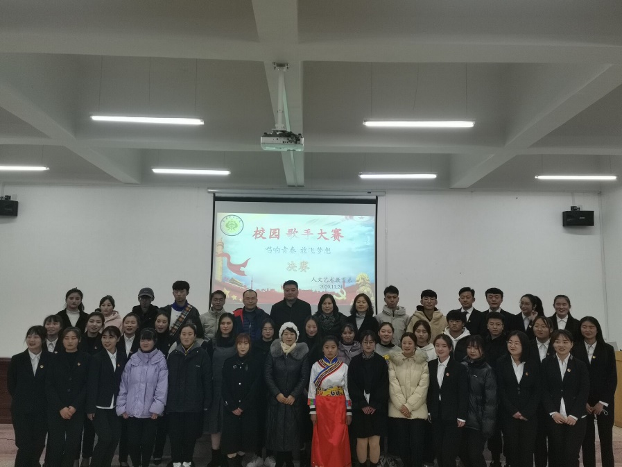 為了豐富校園文化生活,陶冶學生藝術情操,搭建學生展示自我的平臺,營造健康和諧的校園文化氛圍,提高我院大學生的綜合素質和藝術修養(yǎng),學院決定舉辦第十八屆“校園好聲音”歌手大賽,為積極響應學院號召,人文藝術教育系于2020年11月24日下午4點40在勵勤樓階梯教室隆重舉行歌唱比賽決賽。比賽經過班級內部選拔和初賽、復賽激烈的比拼,最終有24名選手站在了決賽的舞臺;本次比賽由李丹主持,并邀請輔導員唐鑫基和李怡璠老師、主任李欣老師、馬秀玲、王小娟老師5位來當本次活動的評委;觀看本次比賽的人員有19、20級一百五十名同學。? ?