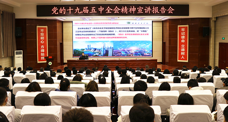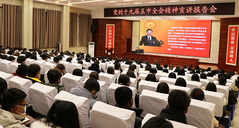 黨委書(shū)記、院長(zhǎng)趙明為學(xué)院黨員干部和師生宣講黨的十九屆五中全會(huì)精神