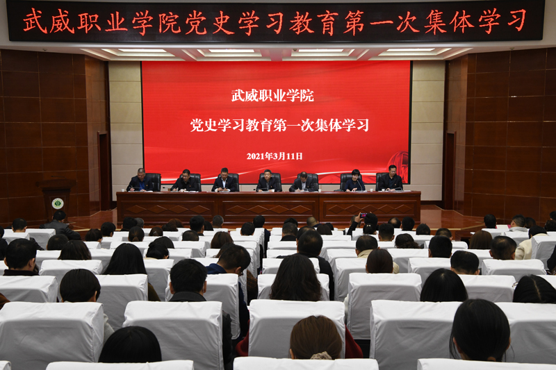 3月11日,學院召開黨史學習教育動員大會,深入學習習近平總書記在黨史學習教育動員大會上的講話,省委、市委黨史學習教育動員大會精神,安排部署學院黨史學習教育,并組織開展了第一次集體學習。學院領導班子成員、中層干部、師生黨員代表、入黨積極分子代表共220人參加會議。會議由黨委副書記翟存祥主持。