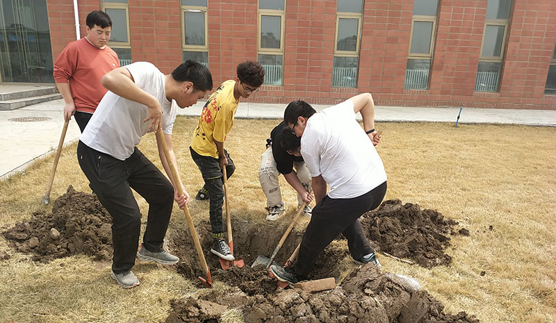 活動(dòng)中,師生代表熱情高漲、干勁十足,按照專(zhuān)業(yè)人員的植樹(shù)指導(dǎo),三人一組,緊密分工協(xié)作、熱情高漲、干勁十足,揮鍬挖窩、扶苗培土、提桶澆水,道道工序細(xì)致認(rèn)真、有條不紊。經(jīng)過(guò)師生代表近四小時(shí)的忙碌勞動(dòng),三百株新栽的樹(shù)苗迎風(fēng)挺立,為學(xué)院增添上一抹“新綠”,也將綠色發(fā)展觀念“種”進(jìn)每位師生心中。