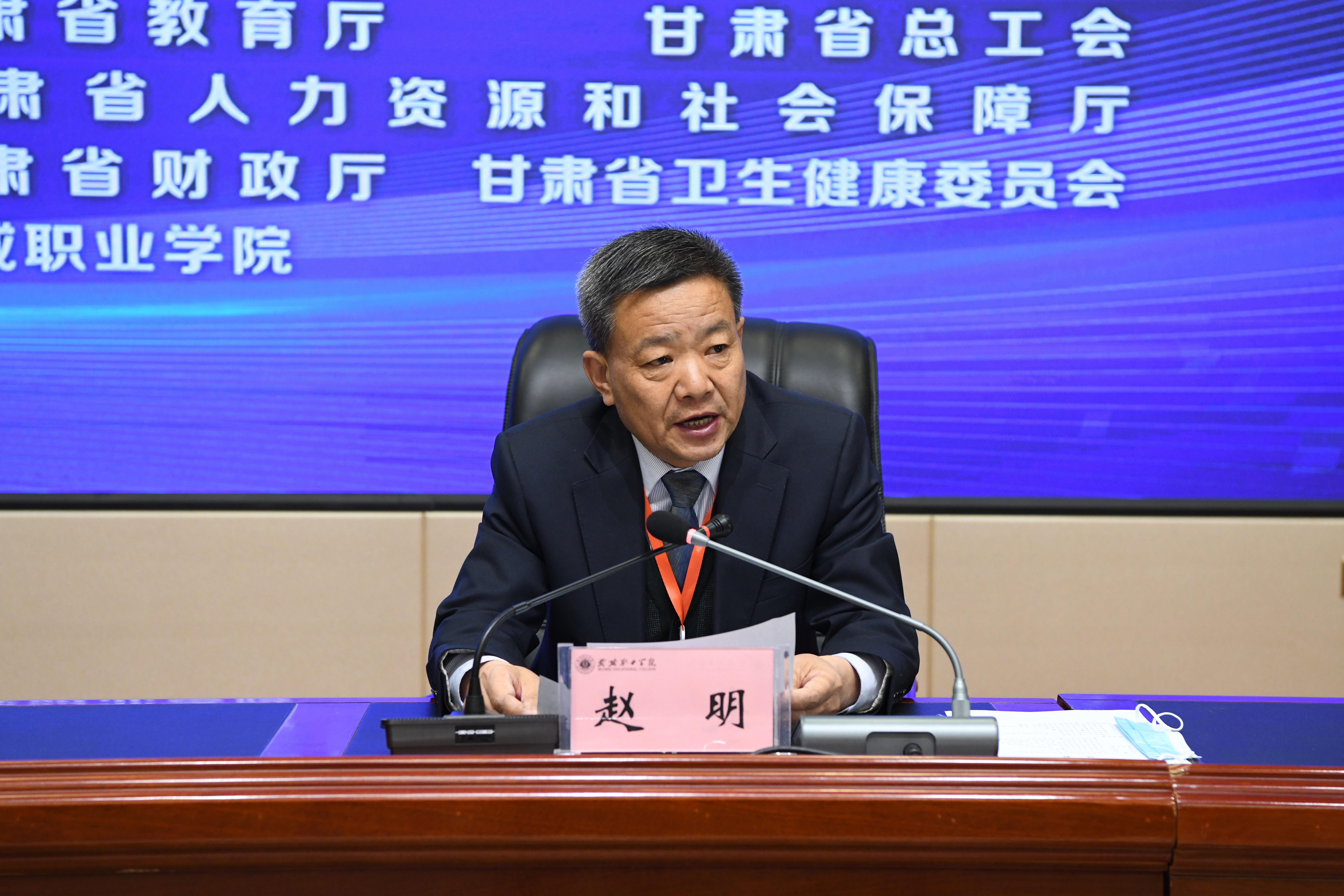 武威市教育局黨組書記、局長馬生威同志宣布2021年全省職業(yè)院校技能大賽武威職業(yè)學(xué)院賽點開賽。