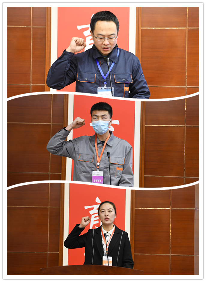 開賽儀式上,裁判員代表董佳輝、參賽學(xué)生代表劉杰和參賽教師代表鄒萬芳分別進行了宣誓。