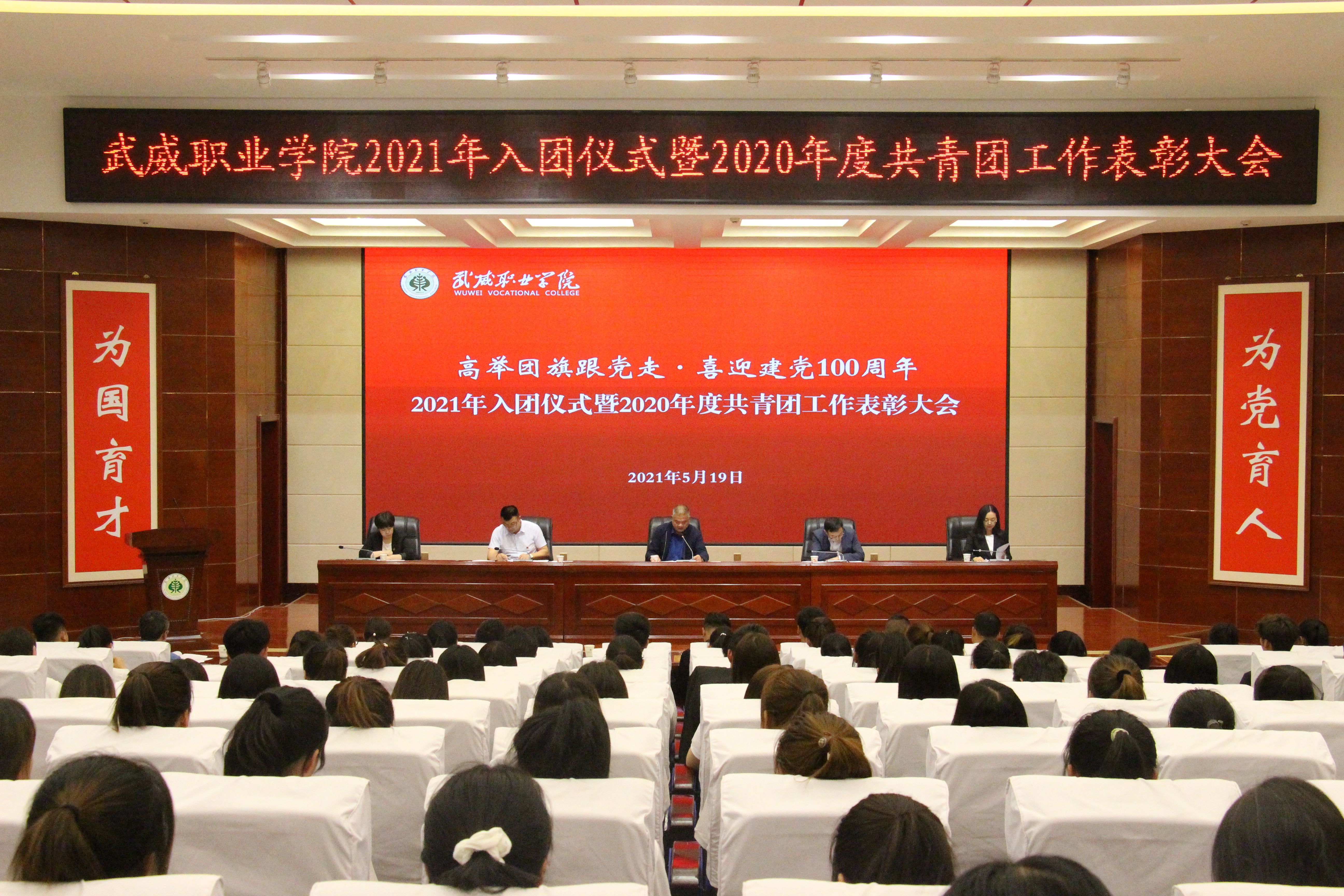 5月19日下午,院團(tuán)委在菁英廳舉辦2021年入團(tuán)儀式暨2020年度共青團(tuán)工作表彰大會。學(xué)院黨委委員、副院長王守云出席大會并講話,院團(tuán)委全體干部、各院系團(tuán)委書記、2021年新入團(tuán)團(tuán)員、受表彰代表、團(tuán)員青年代表共220人參加了大會。