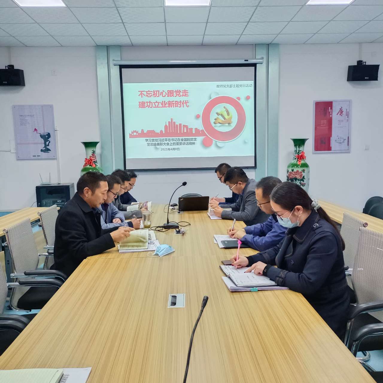 4月8日,電子信息工程系組織學(xué)習(xí)習(xí)近平總書記在全國脫貧攻堅表彰大會上的講話精神,全體教師黨員參加學(xué)習(xí),電子信息工程系黨總支書記袁青年主持學(xué)習(xí)。
