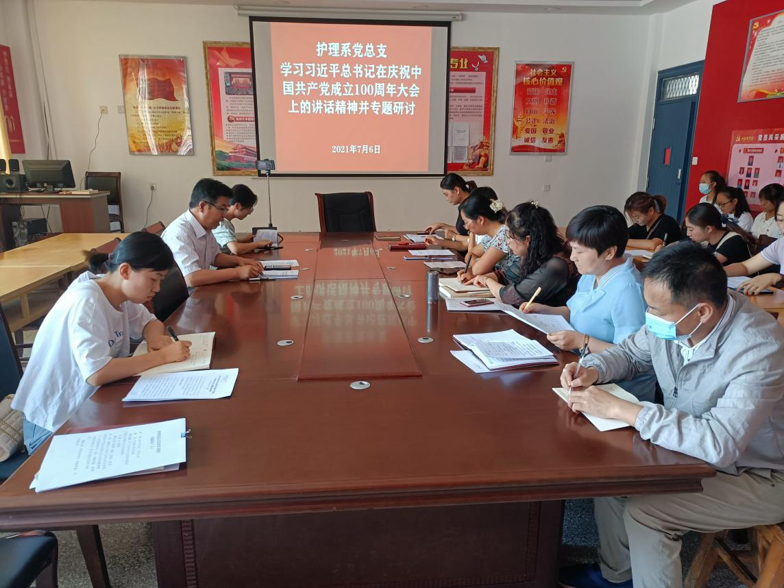 護理系黨總支專題學(xué)習(xí)領(lǐng)會習(xí)近平總書記在慶祝中國共產(chǎn)黨成立100周年大會上的重要講話精神并研討交流