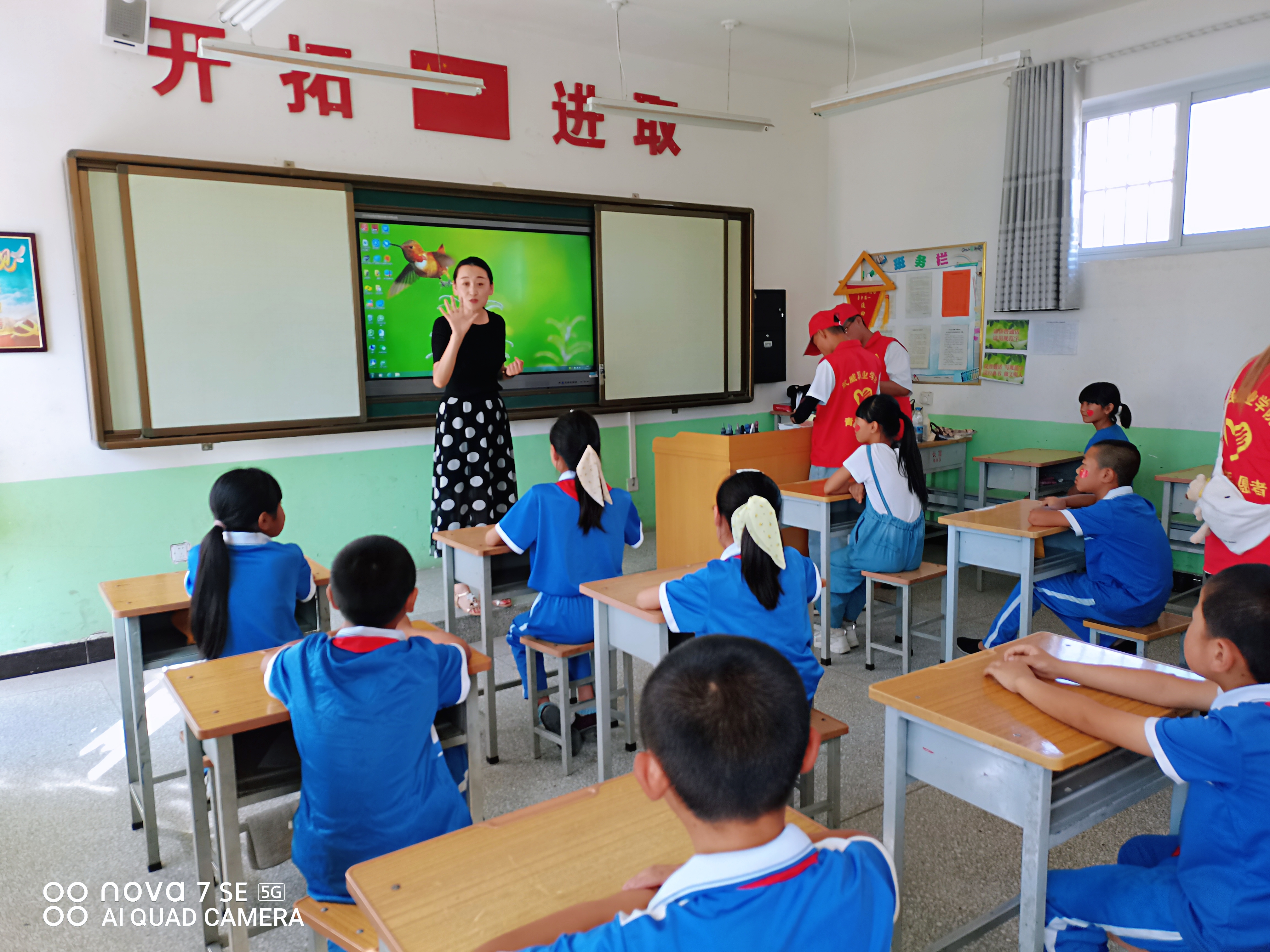 據(jù)了解,長富小學(xué)的孩子們大都是來自貧困家庭的留守兒童,孩子們性格靦腆,不擅表達。為此,實踐隊員們制定了開放互動的活動方案,從有趣的語音小游戲、趣味口部操,到聲韻母的發(fā)音、拼讀易錯字,再到讓孩子們勇敢站在講臺上朗讀,循序漸進地糾正孩子們的發(fā)音。隊員們?yōu)楸敬位顒泳臏?zhǔn)備了獎品,鼓勵孩子們在課堂上踴躍表現(xiàn)自己,在獲得知識的同時增強自信。