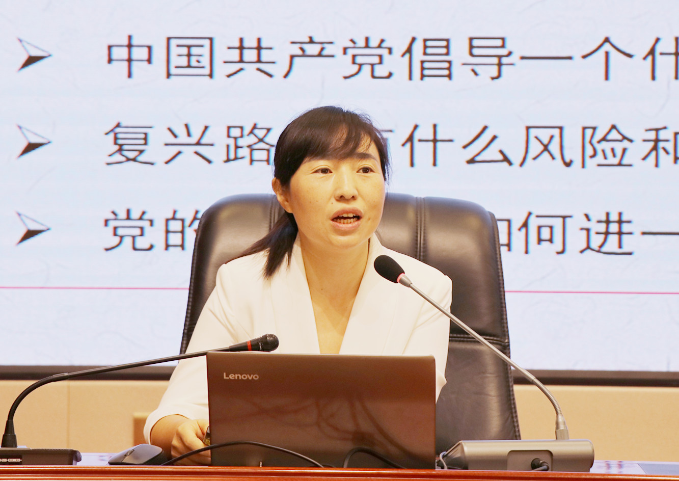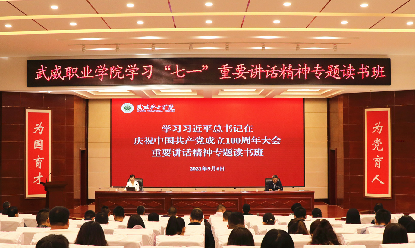 讀書班邀請(qǐng)市委黨史宣傳團(tuán)成員、甘肅畜牧工程職業(yè)技術(shù)學(xué)院副教授羅海燕同志作專題輔導(dǎo)報(bào)告。羅海燕同志從深刻把握習(xí)近平總書記“七一”重要講話的重大意義、深刻把握習(xí)近平總書記“七一”重要講話的豐富內(nèi)涵、學(xué)習(xí)貫徹落實(shí)“七一”講話精神三個(gè)方面,對(duì)習(xí)近平總書記在慶祝中國(guó)共產(chǎn)黨成立100周年大會(huì)上的重要講話進(jìn)行了解讀,報(bào)告主題鮮明、內(nèi)涵豐富,給參加讀書班的黨員干部和師生作了一場(chǎng)精彩的專題輔導(dǎo)。