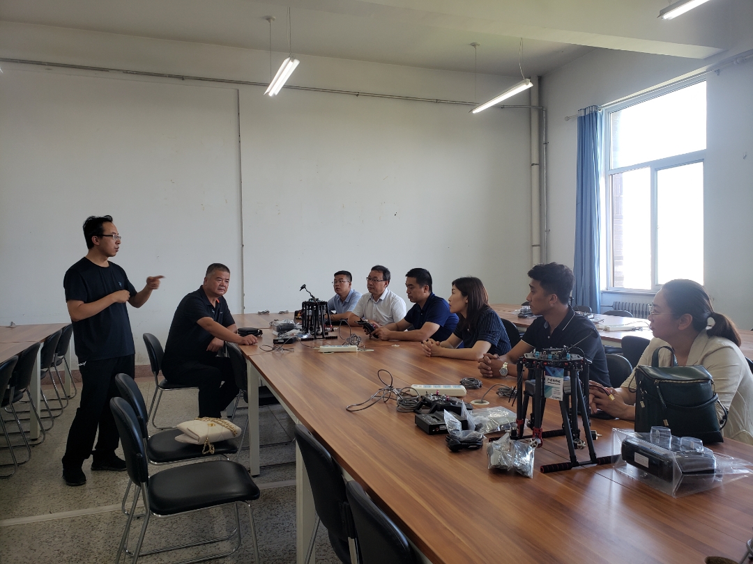 2021年8月5日,天津遠(yuǎn)洋泓基電子工程有限公司總經(jīng)理周童、西北區(qū)域經(jīng)理劉廣偉在武威市鄉(xiāng)村振興局副局長(zhǎng)劉志奎、武威市教育局職教科負(fù)責(zé)人李學(xué)德、電教館館長(zhǎng)付振江陪同下來(lái)武威職業(yè)學(xué)院實(shí)地走訪并就應(yīng)用電子技術(shù)(無(wú)人機(jī)裝備與維護(hù))專業(yè)校企深入合作進(jìn)行洽談。武威職業(yè)學(xué)院副院長(zhǎng)王守云,電子信息工程系主任李亞梅及部分教師代表參加相關(guān)活動(dòng)。副院長(zhǎng)王守云同志主持了參觀座談。