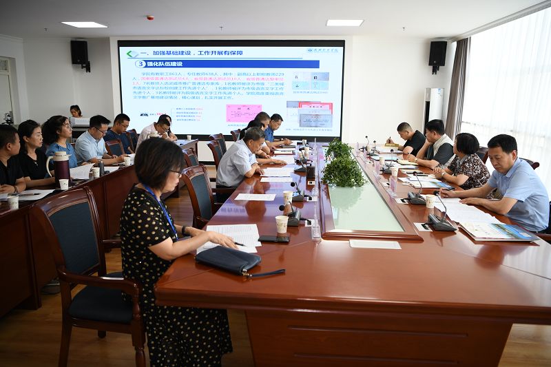 首先召開(kāi)了“甘肅省語(yǔ)言文字推廣基地建設(shè)工作匯報(bào)會(huì)”,田迎春同志做了工作匯報(bào)。省語(yǔ)委專家聽(tīng)取匯報(bào)、查看基地建設(shè)支撐資料,并就基地建設(shè)經(jīng)費(fèi)保障、推廣活動(dòng)的內(nèi)容及形式等方面提出問(wèn)題,學(xué)院相關(guān)負(fù)責(zé)同志作出詳細(xì)解答。匯報(bào)、提問(wèn)結(jié)束后,李晶同志對(duì)學(xué)院基地建設(shè)中取得的成績(jī)給予了肯定,同時(shí)也指出了建設(shè)過(guò)程中存在的問(wèn)題與不足。他強(qiáng)調(diào)在以后的工作中要充分利用學(xué)院師資力量,結(jié)合武威當(dāng)?shù)靥厣?,不斷?chuàng)新語(yǔ)言文字推廣工作的形式和內(nèi)容,形成品牌特色,將推廣工作從學(xué)院推向全市,為武威經(jīng)濟(jì)社會(huì)發(fā)展做出更多貢獻(xiàn)。趙明同志代表學(xué)院向省語(yǔ)委專家表達(dá)了對(duì)我院基地建設(shè)工作指導(dǎo)的感謝,并表示在今后作中我院將發(fā)揮優(yōu)勢(shì),彌補(bǔ)不足,進(jìn)一步加強(qiáng)基地建設(shè),在學(xué)院語(yǔ)言文字工作方民面取得新突破,引領(lǐng)當(dāng)?shù)卣Z(yǔ)言文字事業(yè)發(fā)展。