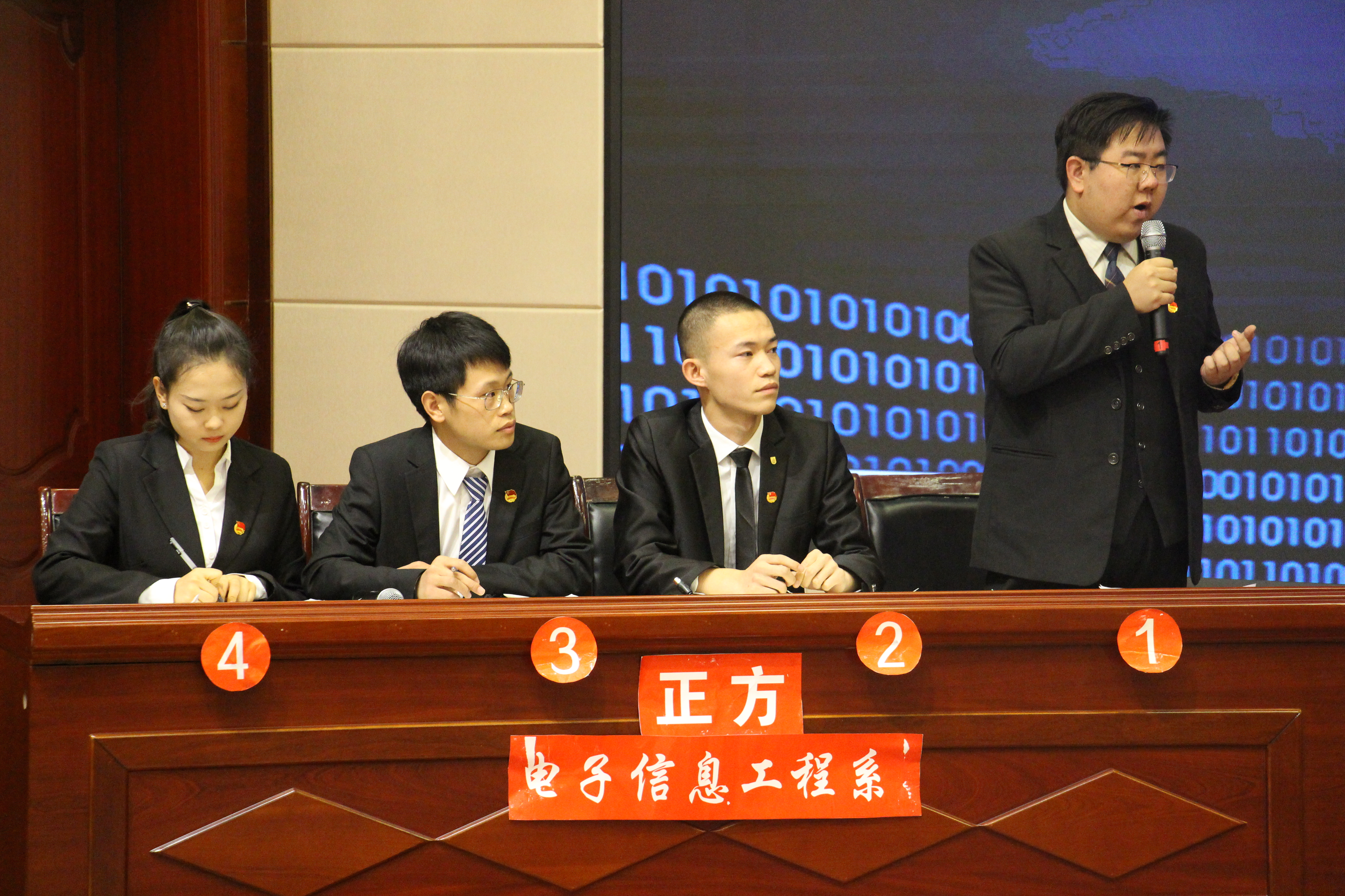 經(jīng)過11場次的比賽,電子信息工程系代表隊(duì)和藥學(xué)系代表隊(duì)進(jìn)入最后決賽。決賽現(xiàn)場,正反雙方針對高素質(zhì)技術(shù)技能人才以“仁”還是以“智”為先拉開激烈交戰(zhàn)。雙方選手在立論、駁立論、攻辯等環(huán)節(jié)中思路清晰,引經(jīng)據(jù)典,高潮迭起。自由辯論環(huán)節(jié),雙方唇槍舌戰(zhàn),針鋒相對,步步為營,愈辯愈烈,精彩紛呈,觀眾也積極互動,現(xiàn)場氣氛十分活躍。
