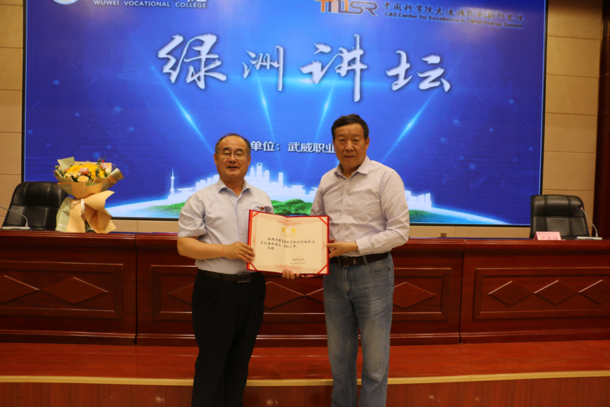 活動第二階段,由中科低碳新能源技術(shù)學(xué)院院長楊存忠為梁志強(qiáng)頒發(fā)了聘請其擔(dān)任武威職業(yè)學(xué)院中科低碳新能源技術(shù)學(xué)院專業(yè)建設(shè)指導(dǎo)委員會委員和武威職業(yè)學(xué)院兼職教授。梁主任還與在場師生進(jìn)行了愉快的溝通互動環(huán)節(jié),從未來就業(yè)工作和專業(yè)建設(shè)方面為師生答疑解惑。
