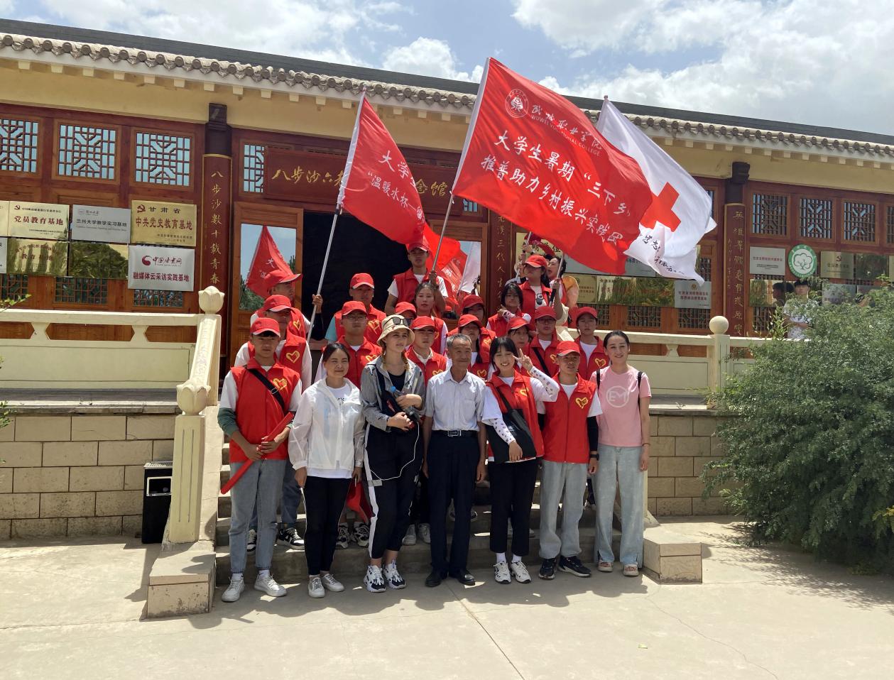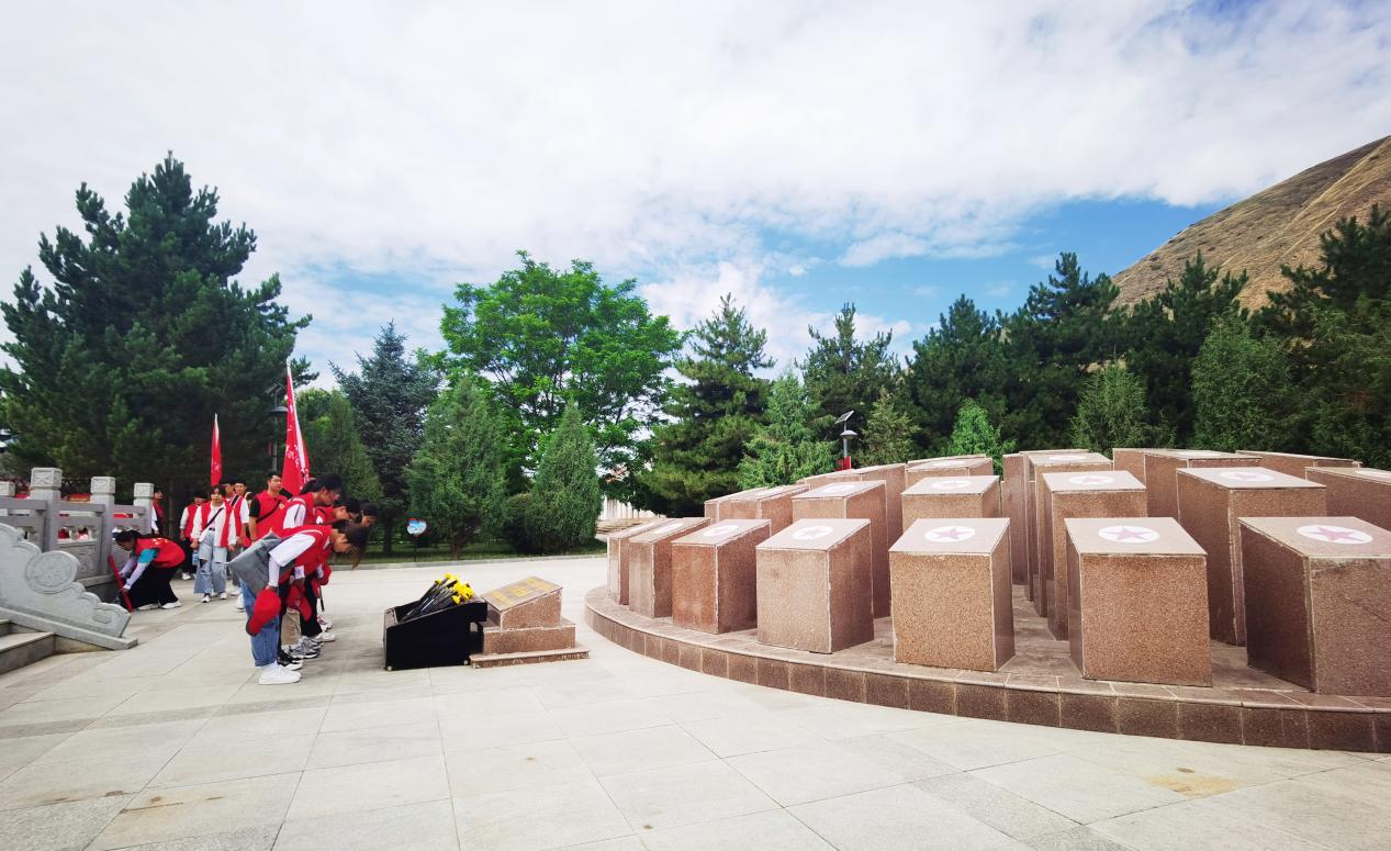 為緬懷革命先烈,學習革命前輩的英勇事跡,第一站,實踐隊員們來到中國工農(nóng)紅軍西路軍古浪戰(zhàn)役紀念館。革命先烈是一面鮮艷的紅旗,是一座不朽的豐碑。那一張張歷史照片、一份份紅軍遺物,向同學們講述著那段崢嶸歲月。實踐隊員們被紅軍精神感染,在碑前憑吊、敬獻鮮花,共同緬懷那些為戰(zhàn)爭而光榮犧牲的革命烈士。隊員們深深地感受到:先烈已逝,但他們的事跡已銘記在炎黃子孫心中;他們的鮮血已注入中華兒女的血脈;他們的靈魂已筑成中華民族新的長城!在推普助力鄉(xiāng)村振興、實現(xiàn)偉大“中國夢”的現(xiàn)代化建設征程中,仍然需要這種卓絕堅毅的革命精神!每個人都應牢記自己的初心使命,為建設祖國努力奮斗。