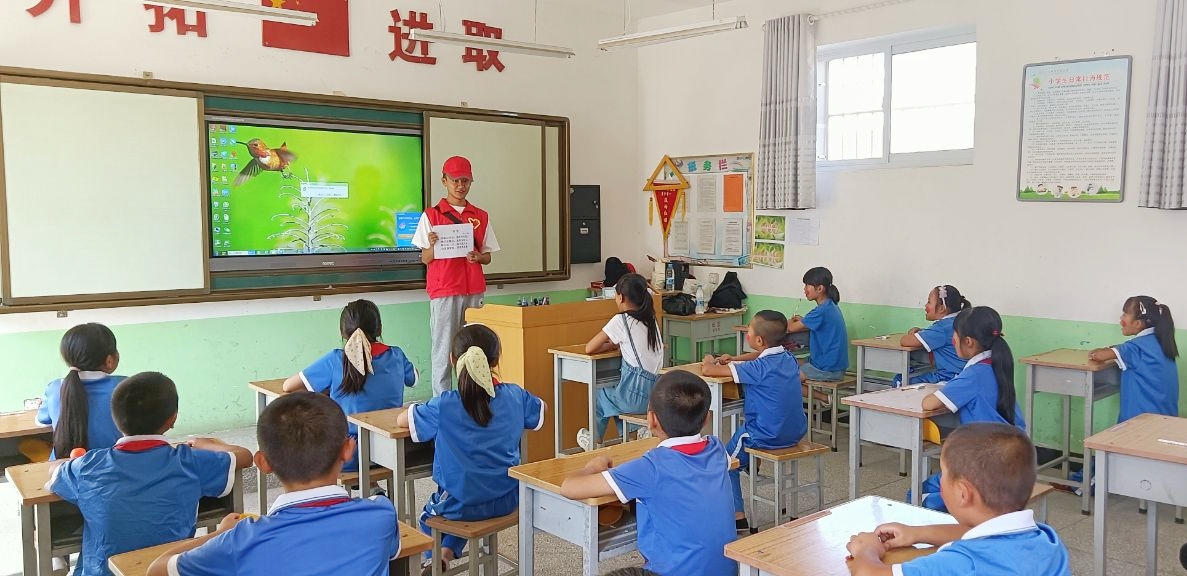 在活動期間,實踐隊員們先后前往了甘肅省武威市涼州區(qū)豐樂鎮(zhèn)九年制學校、長城鎮(zhèn)長富小學、黃羊鎮(zhèn)青少年興趣特長班、雙城鎮(zhèn)少兒書法班、古浪縣富民小學等地進行推普活動,為近1000名中小學生開展以“說好普通話,做中國好娃娃”為主題的普通話推廣專題教育和素質(zhì)拓展活動。經(jīng)過調(diào)研得知,這些孩子大多是來自貧困家庭的留守兒童,孩子們性格靦腆,不擅表達。為此,實踐隊員們制定了開放互動的活動方案,從有趣的語音小游戲、趣味口部操,到聲韻母的發(fā)音、拼讀易錯字,再到讓孩子們勇敢站在講臺上朗讀、講故事,循序漸進地糾正孩子們的發(fā)音。為了提高孩子們參與的積極性,隊員們?yōu)楸敬位顒泳臏蕚淞霜勂?,鼓勵孩子們在課堂上踴躍表現(xiàn)自己,在獲得知識的同時增強自信。