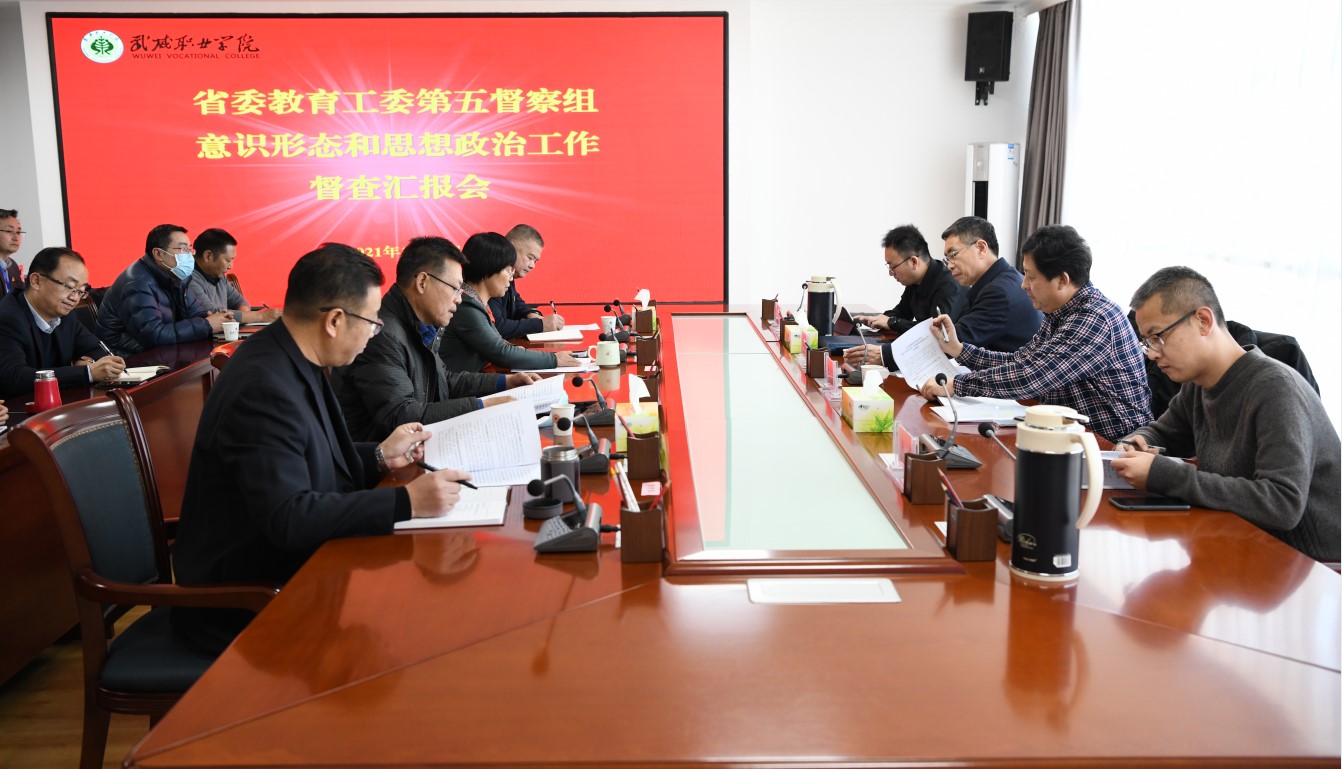 12月9日下午,由蘭州城市學院黨委委員、宣傳部部長,副校長、檢查組組長李慕堂,甘肅農(nóng)業(yè)職業(yè)技術(shù)學院宣傳部部長、馬克思主義學院院長張勝聞、蘭州信息科技學院黨委宣傳部部長焦磊、蘭州城市學院黨委宣傳部宋福組成的省委教育工委第五檢查組來我院督查指導學院思想政治工作開展情況。黨委委員、副院長王永緒、何毅,紀委書記、監(jiān)察專員陳曉煜,黨委委員、副院長王守云陪同檢查。