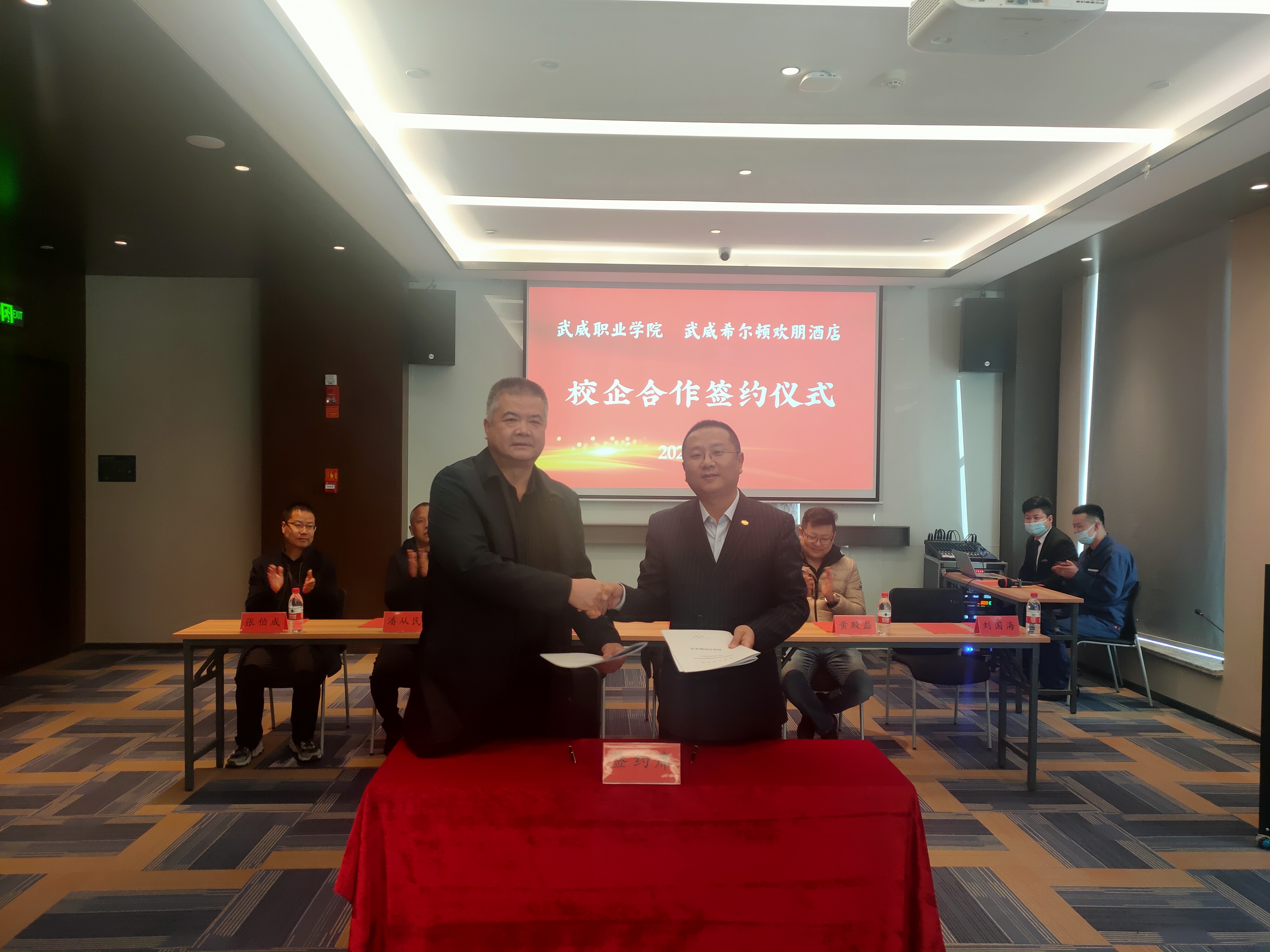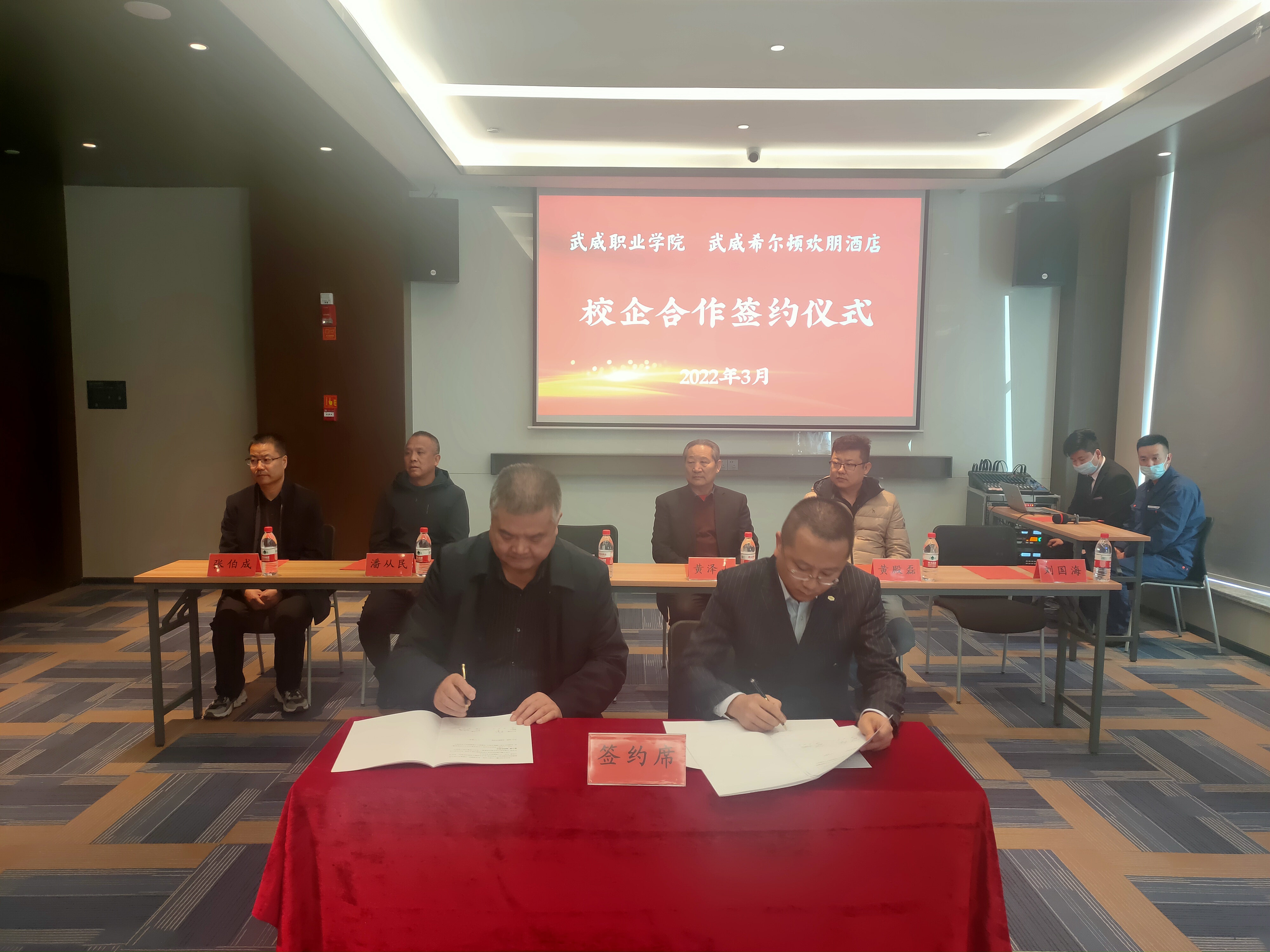 為深入貫徹落實教育部2022屆普通高校畢業(yè)生就業(yè)創(chuàng)業(yè)網(wǎng)絡(luò)視頻會議精神,統(tǒng)一思想,提高認識,服務(wù)學院“雙高計劃”建設(shè),3月2日,學院與武威希爾頓歡朋酒店舉行校企合作揭牌暨簽約儀式,副校長王守云代表學院出席簽約儀式。