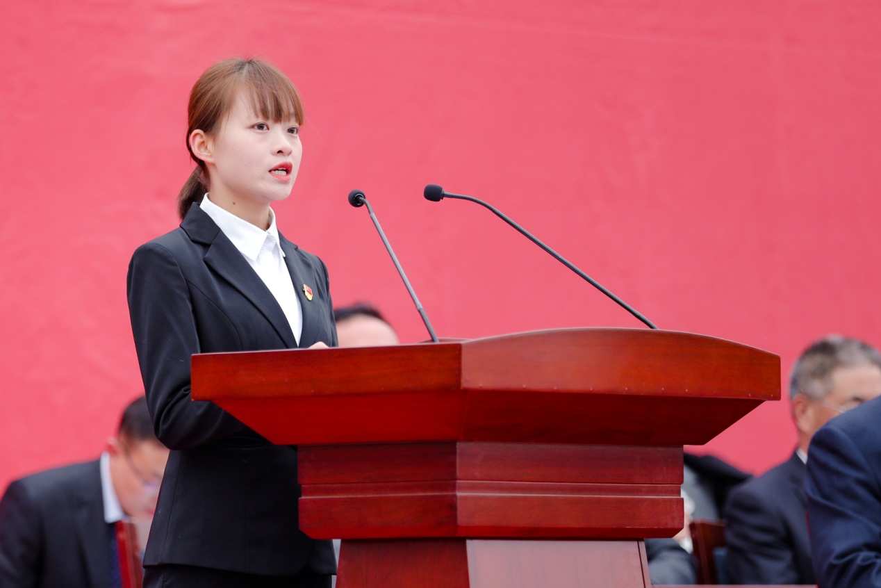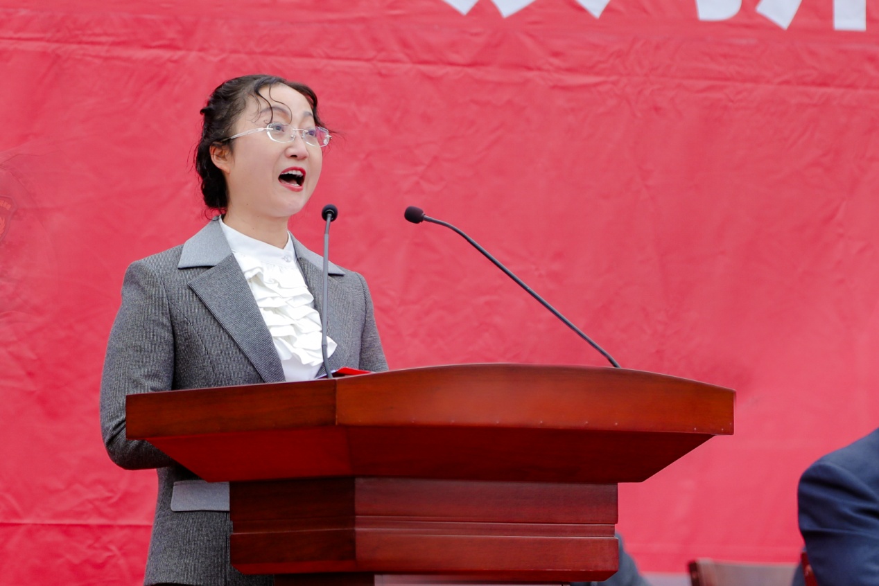 上午9時(shí),大會(huì)在莊嚴(yán)的國(guó)歌聲中拉開(kāi)序幕,二十余名學(xué)生代表致獻(xiàn)詞《請(qǐng)黨放心,強(qiáng)國(guó)有我》,用最飽滿(mǎn)的聲音,堅(jiān)定地向黨道出了青春的誓言。