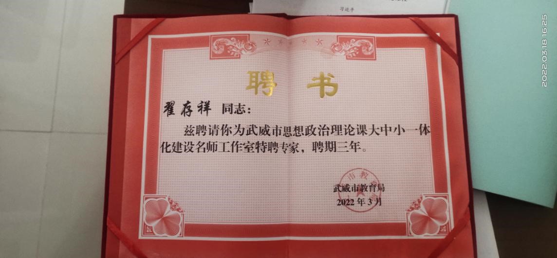會議學(xué)習(xí)了習(xí)近平總書記在學(xué)校思想政治理論課教師座談會上的重要講話精神,總結(jié)了近年來武威市思政課建設(shè)取得的成績,各縣區(qū)交流了經(jīng)驗做法,安排部署了下一階段工作。同時,舉行了武威市思想政治理論課大中小一體化建設(shè)名師工作室授牌和名師工作室特聘專家聘任儀式。學(xué)校思政課名師工作室負責(zé)人、黨委副書記翟存祥教授被聘為武威市思想政治理論課大中小一體化建設(shè)名師工作室特聘專家。