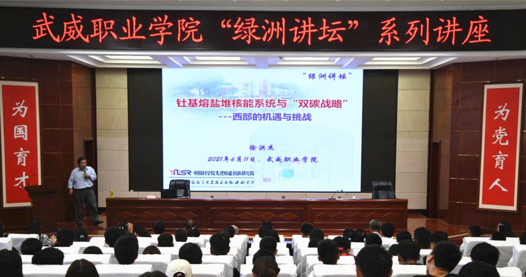 在全院上下深入開展黨史學(xué)習(xí)教育之際,為進(jìn)一步推進(jìn)省級“雙高計(jì)劃”建設(shè),促進(jìn)中科低碳新能源技術(shù)學(xué)院創(chuàng)新發(fā)展,深化學(xué)院教育教學(xué)改革,6月11日,學(xué)院第45期“綠洲講壇”開講,本次論壇邀請中國科學(xué)院上海應(yīng)用物理研究所研究員、博士生導(dǎo)師兼中國科學(xué)院先進(jìn)核能創(chuàng)新研究院院長徐洪杰為全院師生作題為《基于釷基熔鹽堆的風(fēng)光核儲多能融合系統(tǒng)——西部“雙碳戰(zhàn)略”之路的機(jī)遇和挑戰(zhàn)》的主旨報(bào)告。中國科學(xué)院上海應(yīng)用物理研究所黨委書記、副所長趙明華研究員,武威園區(qū)園區(qū)辦主任趙先堂,聯(lián)合辦學(xué)主管兼中科低碳新能源技術(shù)學(xué)院院長助理米麗娟博士出席,學(xué)院領(lǐng)導(dǎo)班子成員、中層干部、各院系師生代表共220余人參加報(bào)告會。報(bào)告會由學(xué)院黨委書記、院長趙明主持。