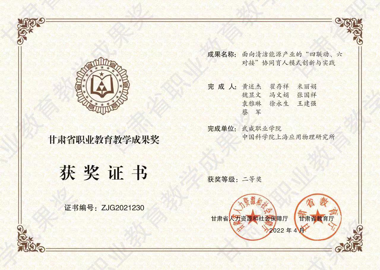 中科低碳新能源技術(shù)學(xué)院榮獲2021年甘肅省職業(yè)教育教學(xué)成果獎(jiǎng)二等獎(jiǎng)