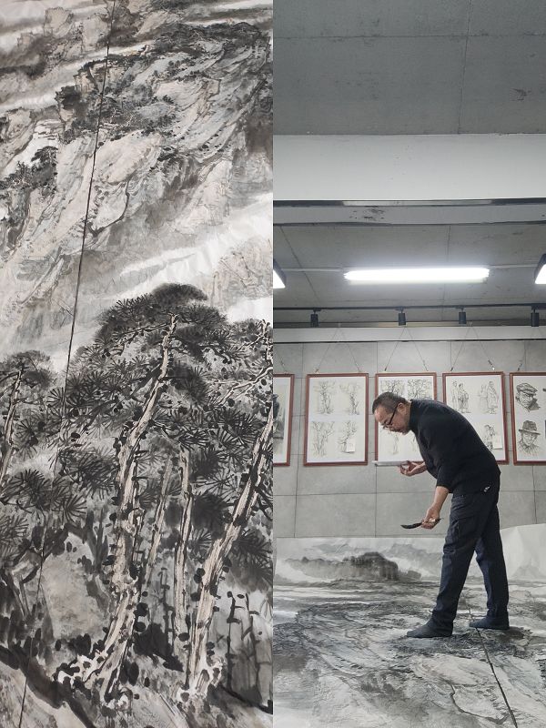 2022年初,為學(xué)院圖書館制作3米×7米的巨幅山水畫作品