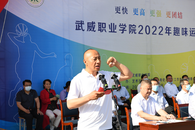 5月24日上午,武威職業(yè)學(xué)院2022年趣味運(yùn)動(dòng)會(huì)在運(yùn)動(dòng)場(chǎng)隆重開幕。開幕式由學(xué)校黨委委員、副校長王守云主持。學(xué)校領(lǐng)導(dǎo)班子成員,各部門負(fù)責(zé)同志,二級(jí)學(xué)院黨總支書記、院長參加開幕式。學(xué)校黨委書記、校長趙明出席并致開幕詞。