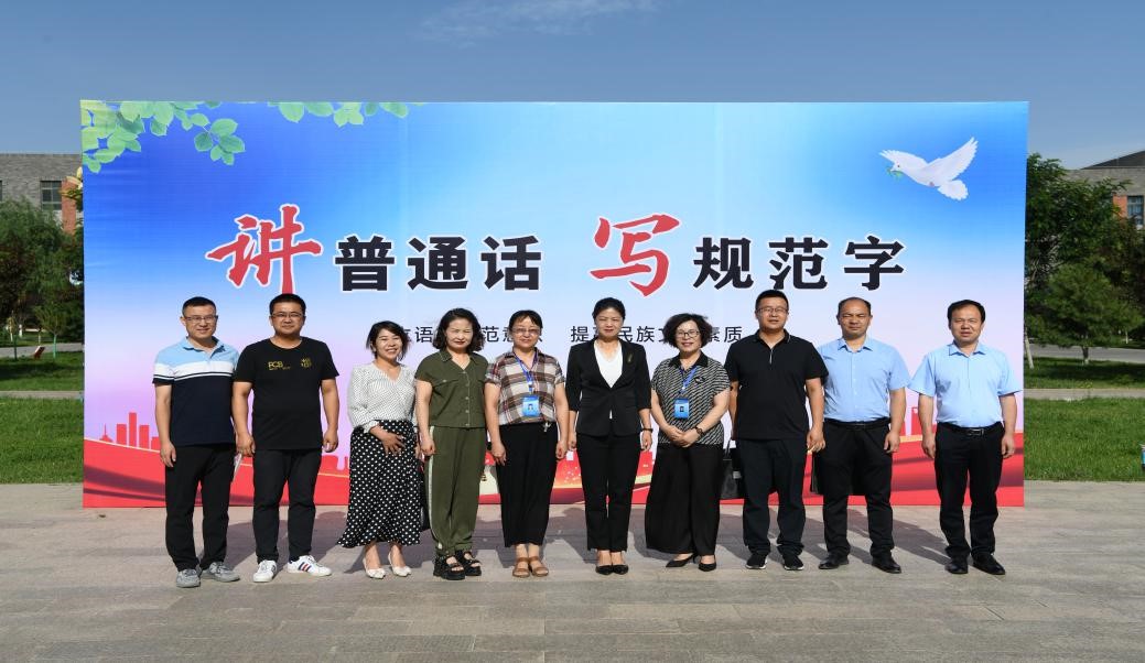 7月4日上午,武威市教育局、市語委辦主任及專家一行5人對學校創(chuàng)建“市級新時代語言文字示范?!惫ぷ鬟M行評估檢查。