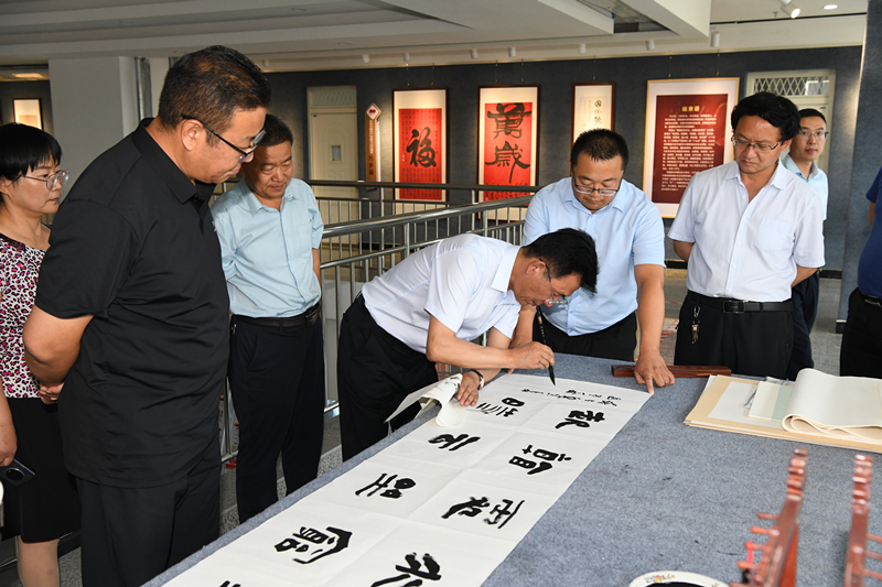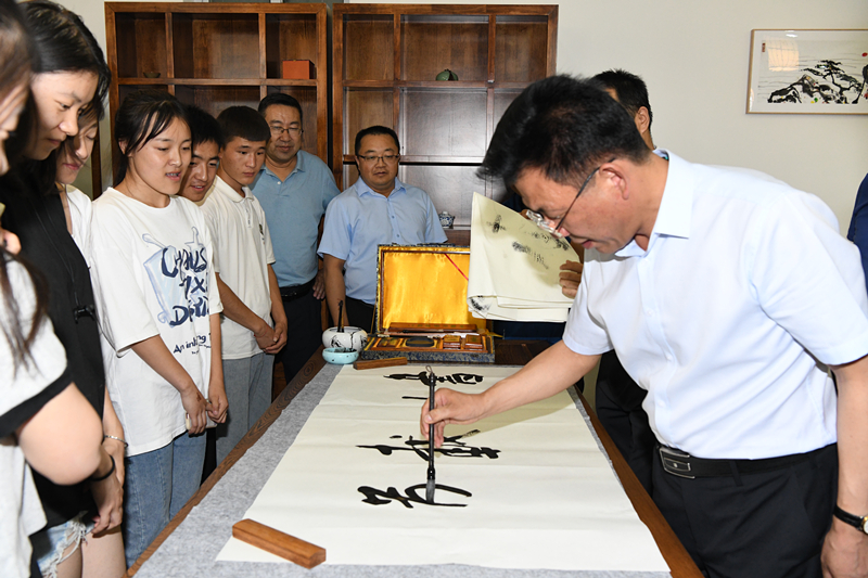 趙明在致辭中向市文旅局、市書畫院及齊澤山先生長期以來對學(xué)校改革發(fā)展給予的關(guān)心和支持表示衷心的感謝。他表示,齊澤山先生為學(xué)校捐贈的書法作品為整個校園人文景觀和文化環(huán)境增添了濃墨重彩的一筆,促進(jìn)了樓宇文化建設(shè)。學(xué)校將珍惜并運(yùn)用好這些優(yōu)質(zhì)文化資源,發(fā)揮好藝術(shù)作品的審美功能、教育功能,用藝術(shù)熏陶和精神洗禮進(jìn)一步激勵廣大師生。