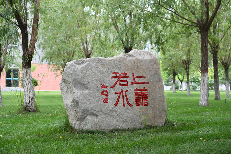 上善若水 ??沈鵬題 ??位于3 號學生公寓樓南側