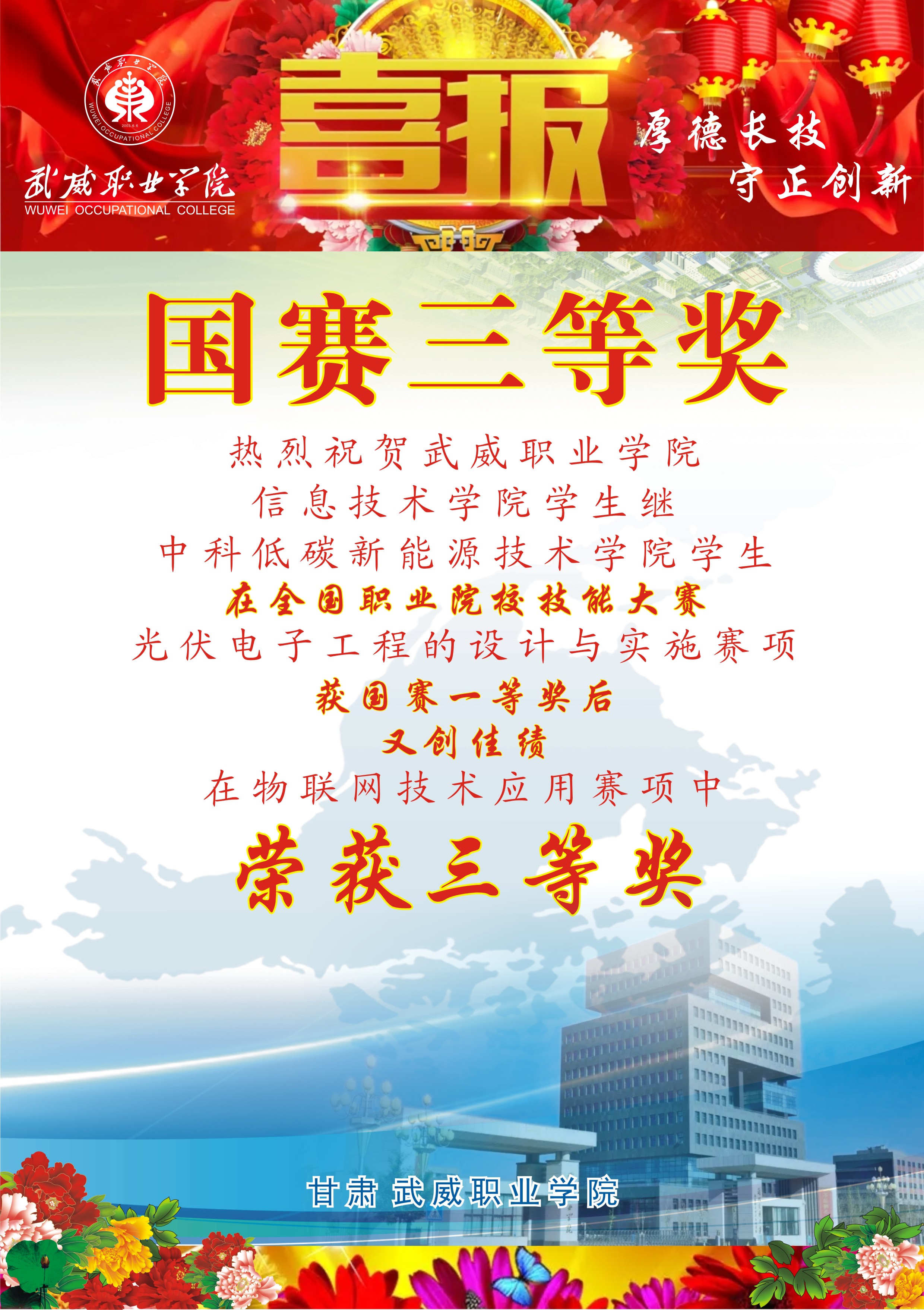 武威職業(yè)學(xué)院榮獲全國職業(yè)院校技能大賽國賽一等獎(jiǎng)